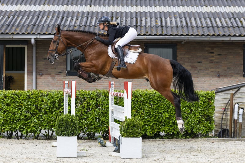 The seven-year-old Sundance has already competed up to 1.30m level. He is a big, nice horse for an amateur rider wanting to jump higher classes. Sundance has a good attitude, loves to jump and wants to leave the poles up. Sire Toulon jumped for years in Nations Cups under Hubert Bourdy (FRA) and is called one of the best breeding Heartbreaker sons. More than a hundred offspring are already 1.60m Grand Prix classified, including F-One USA (World Equestrian Games participant and 1.65m GP with Lorenzo de Luca), Delux van T&L (1.70m with Niels Bruynseels), Vancouver de Lanlore (1.70m GP with Pius Schwizer) and DM Jacqmotte (1.70m GP with Wilm Vermeir). Dam Datania ‘U’ van het Juxschot is sired by the 1.60m Grand Prix stallion Unique II Drum van het Juxschot, out of a mare by Zeoliet x Farn.