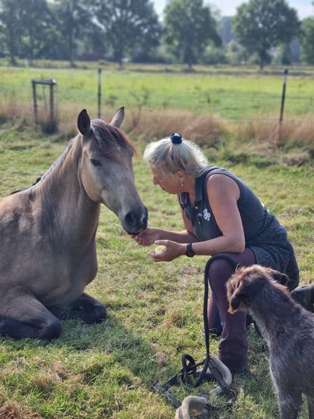 Zum Verkauf steht die reinrassige Berber-Stute NAFASEEH N’AIT ITRAN, geboren 06/2014, Goldfalbe, Stockmaß 154 cm. Eingetragen im Stutbuch I der VFZB mit der Gesamtnote 6,8. Abstammung: Vater: HÉCLAIR D’ARBRE MORT (Perlino) Mutter: AYANA (Schimmel) von JIHAL aus der GHARDAIA DE TRABAT Substanz, trockene Fundamente, Ausdauer und ein klarer, wacher Charakter kennzeichnen Nafaseeh. Sie zeigt sich menschenbezogen, kooperativ und nervenstark, mit feiner Reaktion auf Körpersignale. Aufgrund ihres Typs, ihrer Abstammung und der Eintragung im Stutbuch I eignet sie sich sowohl als gehfreudiges Freizeit- und Geländepferd als auch für Berber-Liebhaber mit Interesse an Rasseerhalt und Zucht. Die Stute lebt in einer kleinen Herde im Offenstall, ist gesund, schmiedefromm, geht auf den Anhänger und zeigt keine Unarten. In der Herde ist sie vorsichtig und geht lieber weg als zu streiten. Nafaseeh ist kein Anfängerpferd, überzeugt jedoch durch Ehrlichkeit, Vorwärtsfreude und Geländesicherheit, wach, mutig und ausdauernd. Sie ist eine Partnerin für Menschen mit innerer Ruhe, Klarheit und Respekt vor der Ursprünglichkeit dieser alten Rasse. Diese Stute sucht keinen „Besitzer“, sondern einen Menschen, der ihre Sprache versteht und ihr Raum lässt, sich zu zeigen. Die Abgabe erfolgt ausschließlich wegen Aufgabe der Pferdehaltung. Gesucht wird ein wertschätzender Platz bei Menschen, die die Besonderheit und Ursprünglichkeit des Berber-Pferdes kennen oder kennen lernen wollen. Bei ehrlichem Interesse freue ich mich über ein faires Angebot und ein Kennenlernen auf Augenhöhe.