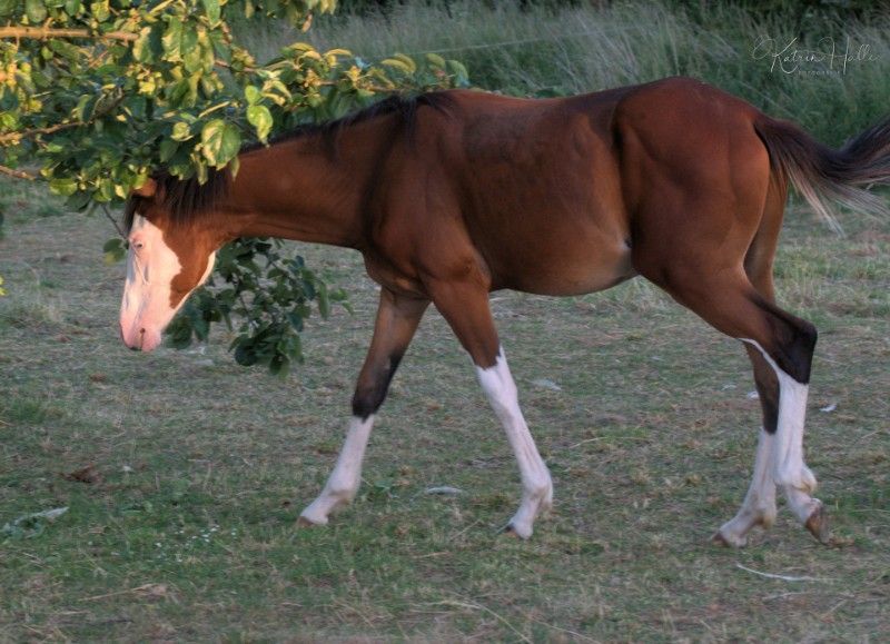 Sparki ma mega podwójny papier imienny AQHA APHA i fenomenalny wygląd! Jest testowany SW 1 i SW 2. Właściwie chcieliśmy go zatrzymać, ale jeśli jego kumpel Bueno zostanie sprzedany, to będzie tu sam i dlatego na razie jest na sprzedaż. Sparki pochodzi ze spółki zależnej BIG CHEX TO CASH i z Gunsparks, która odnosi duże sukcesy. Jest to DNA gested i 4 panel N / N Herda / N Sparki jest bardzo łatwym w obsłudze chłopcem, który zawsze chce się podobać i jest dobry w linach. Dorasta na letnim pastwisku razem ze swoim kumplem Bueno, który jest w tym samym wieku, i naszym wałachem Peters Passion Dream. Sparki ma już polisę ubezpieczeniową na życie, którą można przejąć. Rezygnacja jest teraz możliwa dzięki KR-owi, paszportowi DQHA i świeżej szczepionce, ale może on również nadal być wychowywany. Duplikaty dokumentów AQHA APHA
