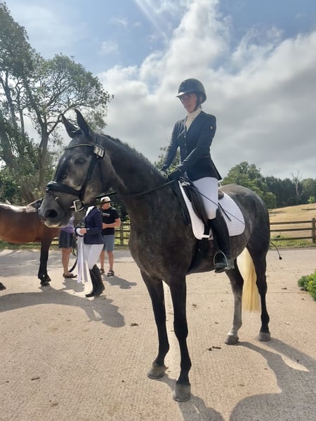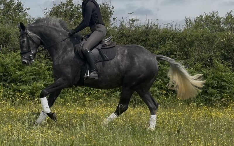 Hallie has a - Wonderful temperament, straightforward mare, very willing and honest. - Strong proven dam line. - Excellent conformation and movement. Collaton Haldora. Born - 17/06/21. 16.2hh https://www.horsetelex.com/horses/pedigree/2249468/collaton-haldora Hallie, is a top quality young horse. Homebred- full history known since a foal. Hallie really does have it all, wonderful temperament, three correct athletic paces. She has plenty of blood and bred to event, but would excel in any discipline. Hallie was lightly backed in December 2024 as a 3-year-old year and then turned away to mature. She is now ready to further her education, started back in work in May. She’s been doing small things 3/4times a week and now started up the work a little. Been doing a variety of long reining/ hacking on quiet lanes alone and in company. Been lunging and schooling in the school and fields, plus pole work, now started jumping under saddle in the last month, see video - https://youtu.be/glMo5Pw7fCY?si=XmlHj5dm2owzW1R5 Hallie has not been pushed in any way. As a homebred, she has been well handled since day one and given the best possible start. Done lots of groundwork/horsemanship training. Living on a small holding/livery yard she has been exposed to tractors/large vehicles, lots of noise, dogs, chickens/ducks etc. You can bring Hallie in on her own, she’s happy to come away from her friends and happy in the stable all day being the only horse in on the yard. Hallie has loose jumped and under saddle showing real promise, looking to be very bold, she has a good technique over a fence with plenty of scope. This filly is from a fantastic proven dam line, out of a British warmblood graded dam. Her sire - has competed up to BE novice. He provides his stock with great trainability, temperament, ability and willingness. Hallie loads and travels well, good for farrier, dentist, all worming and vaccinations are all up to date. Clean limbs, vice free. This mare is really showing all the attitudes of a top class horse, with a lovely outlook on life proving to be bold, level headed, forward thinking with a calm attitude. Photos as a foal to 4yrs old available through Collaton Farm & Livery Yard FB page. Open to vetting - passed vet check. Passport Reg with WBS (UK) and over stamped with SHB(GB). December 3yr old under saddle - https://www.facebook.com/reel/1098050421993362/ Loose jumping as a 3yr old - https://youtu.be/SkNEAUbDE9U?si=jylGD1dgWtJYRW-5 Summer 2024 3yr old - https://youtu.be/oCZkD3uqH6Y?si=qfhRu-ArDnw1iA1H More videos from a foal to 4yr old available on YouTube channel - https://www.youtube.com/@Collatonfarm