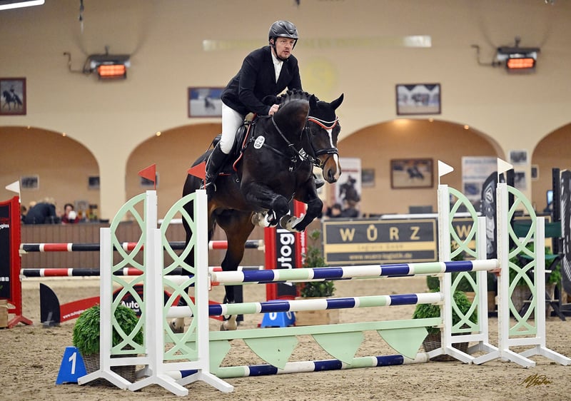 Étalon approuvé magnifiquement dessiné, typé et long sur pattes, issu d'une des dernières juments primées du Verbandsprämie par Donnerhall ! Approuvé pour OS, OL, DSP. Taxe de saillie sur demande. Les premiers poulains sont nés cet été et répondent à toutes les attentes ! La jument mère est une mère d'étalon, une jument primée et, de par son ascendance et sa descendance, une rareté absolue pour l'élevage ! Son propre frère est également approuvé. L'analyse génétique a déjà été effectuée, il est, comme son père, de pure race foncée, ne possède pas de facteur rouge et ne peut donc pas produire d'alezans ! Comme il est né très tard (août), il n'a été débourré que prudemment à 3 ans et a présenté un cheval de selle à la fin de la saison avec des filles, qu'il a maîtrisé souverainement comme un vieux briscard malgré une utilisation de la saillie avec des notes de 7/8. Ensuite, en automne, il a passé son test d'aptitude (50 TT de saut) en tant que plus jeune participant. Là aussi, malgré son très jeune âge et sans compensation d'âge par rapport aux 4-6 ans, il a brillé avec des notes exceptionnelles ! C'est l'un des rares jeunes étalons qui n'a pas dû être débourré. Entre-temps, il a remporté son troisième concours de saut d'obstacles A et a été le seul cheval de 4 ans à se classer très haut face à des 5 et 6 ans avec des notes de 8 ! Actuellement, il a remporté la médaille de bronze lors de la finale du Dobrocker Deister Springpferdechampionat dans sa première épreuve de saut d'obstacles de niveau L ! Il convainc sur toute la ligne par sa qualité, sa conformation et son extérieur ! Il enthousiasme chaque jour par sa facilité sous la selle, sa volonté d'apprendre et de performer, tout en étant toujours équilibré et serein comme un vieux lapin. Un rêve aussi en extérieur ! Absolument pas de manières d'étalon malgré la saillie. Comme son père et ses frères et sœurs, il a une double prédisposition. Il s'agit d'un jeune talent rare qui suivra définitivement les traces de son père ! Avec une formation adéquate, il serait également, comme ses nombreux frères et sœurs, le hunter idéal pour le marché américain ! Il saute les changements de pied avec assurance, toujours décontracté et prudent, et fait preuve d'une grande maniabilité. Il est issu de notre vainqueur d'approbation, vainqueur HLP et finaliste BuCha "Cafe au lait", qui attire l'attention depuis un certain temps déjà par sa descendance incroyablement réussie en dressage et en saut d'obstacles (peut également être vu sur place). C'est l'un des rares géniteurs à pouvoir présenter plusieurs descendants couronnés de succès dans les deux disciplines jusqu'au niveau difficile ! Ainsi, "Cafe's Casimir" (Cafe au lait x Calido x Grannus) a été le premier prix de la vente aux enchères d'élite du Oldenbourg, vainqueur de série en dressage M dès son plus jeune âge, et à 7 ans, à nouveau vainqueur de série lors de ses premiers dressages de niveau S ! Entre-temps, il a remporté des victoires en Intermédiaire I international. La jument Kasselmanns Cafe's Caletta (Cafe au lait x Calato) est déjà victorieuse en dressage S*** et en Grand Prix international. Cafe's Matts (Cafe au lait x Don Frederico) a été le deuxième cheval de dressage le plus cher des ventes mixtes d'été du Oldenbourg. D'autres jeunes chevaux issus de juments maternelles axées sur le saut d'obstacles se sont déjà classés à plusieurs reprises dans des épreuves de dressage de A à M et sont remarquables par leurs mouvements et leur clarté de tête. Il ne fait aucun doute que les descendants de Cafe au lait sont convaincants en saut d'obstacles jusqu'au niveau difficile. Ainsi, notre approuvé Cafe's Champus est devenu vice-champion du monde des jeunes chevaux sous la selle de Rene Tebbel et est également utilisé pour la monte. Également approuvé et issu de notre élevage : Cafe Junior (Cafe au lait x Silvio I), classé au niveau international en saut d'obstacles S*. Cafe's Columbo (Cafe au lait x Belstaff), approuvé en France et très performant en épreuves de saut d'obstacles pour jeunes chevaux. Cafe au lait lui-même a été finaliste du Bundeschampionat sous la selle de Philipp Weishaupt et a connu du succès jusqu'au niveau S***, mais il est également doté de trois GGA impressionnantes et a été formé au niveau S en dressage. Stationné chez Paul Schockemöhle, il a déjà produit plusieurs chevaux d'obstacle couronnés de succès au niveau international, notamment "Royce" (Cafe au lait x Grandilot), vainqueur du FEI CSI5* $500,000 Rolex Grand Prix Wellington. Une très bonne radiographie ainsi qu'un contrôle clinique sont bien entendu disponibles.