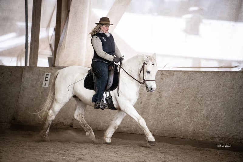 Gaucho du Coeur Rasse: Camargue Pferd Geschlecht: Wallach Alter: 10 Jahre Größe: 1.45 m Gaucho ist ein richtiger Allrounder. Egal ob man ein verlässliches Pferd im Gelände will oder ob man Dressur, Springen oder Working Equitation machen will, mit Gaucho hat man stehts einen willigen, nervenstarken Partner an seiner Seite. Der Wallach ist brav und sehr sympathisch im Umgang. Ist natürlich brav bei allen täglichen Arbeiten, beim Schmied sowie beim Verladen. Rassebedingt und durch seinen starken Körperbau ist er ein Gewichtträger. Im Viereck ist er auf ein gutes A Niveau ausgebildet. Kennt ebenso alle Seitengänge in allen 3 Grundgangarten, reagiert fein an den Hilfen, ist gut zu regulieren und bequem zu sitzen. Der Wallach verfügt über 3 ordentliche Grundgangarten und wäre auch durchaus für Turnierliebhaber geeignet. Im Viereck möchte er mit einer gewissen Korrektheit geritten werden, damit er sein bestes zeigen kann- Lehrpferd. Er verfügt über ein Rassebedingtes schönes Temperament das gut zu regulieren ist aber ihn nicht zur Arbeit bitten lässt. Im Gelände zeigt er sich überaus Nervenstark und trittsicher egal ob alleine oder in der Gruppe. Er ist stehts gut zu regulieren- Spaßpferd mit dem man schöne gemeinsame Stunden verbringen kann. Gaucho ist ein gesundes Pferd mit sehr guten Hufen und läuft deshalb barhuf. Der Hübsche steht im Offenstall in der gemischten Herde und ist Videos kann gerne per WhatsApp geschickt werden