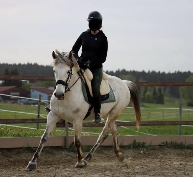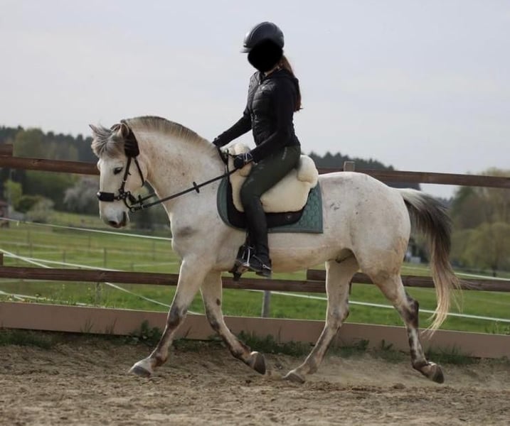 Aufgrund von Zeitmangel verkaufe ich meinen Paso-Fino-Mix-Wallach Sandero in fördernde Hände. Er ist 15 Jahre alt und hat ein Stockmaß von ca. 143 cm. Sandero eignet sich ideal als Freizeitpferd und ist sowohl alleine als auch in der Gruppe sehr zuverlässig im Gelände. Kleine Sprünge bereiten ihm ebenfalls Freude. Zudem zeigt er sich stets motiviert und aufmerksam in der Frei- sowie Bodenarbeit. Aktuell läuft Sandero barhuf, im Gelände wird bei Bedarf mit Hufschuhen geritten, beschlagen war er auch schon voll und ist beim Schmied Anständig.Er ist sehr fein zu reiten. Er wird aktuell ab und zu mit fellsattel geritten , da er aktuell nicht regelmäßig gearbeitet wird weil einfach mir die Zeit fehlt.Eine Physio kontrolliert ihn natürlich regelmäßig und sein Rücken ist in einem sehr guten Zustand. Er ist zudem Schmiede und verladefrom Sandero ist sehr sozialverträglich und steht momentan in einem kleinen Offenstall gemeinsam mit einem Hengst und einem Wallach , stand aber auch schon in einer gemischten Herde.Er leidet allerdings an Asthma/COPD und sollte daher nicht auf Stroh gehalten werden. Er ist voll reitbar, regelmäßige Bewegung wirkt sich positiv auf seinen Zustand aus. Die Erkrankung ist gut eingestellt: Im Winter ist kein Inhalieren notwendig, im Sommer nur bei Bedarf. Ein Inhalator inklusive Zubehör wird mit abgegeben und ist im Kaufpreis enthalten. Da er ziemlich sensibel und fein ist , ist Sandero ist nicht für reine Anfänger geeignet. Platz vor Preis. Bei Interesse oder für weitere Informationen freue ich mich über eine Nachricht per WhatsApp unter +49 162 7267253. probereiten ist möglich; hierfür wird eine Gebühr von 30€ erhoben um reittourismus vorzubeugen,die bei Kauf mit dem Kaufpreis verrechnet wird.