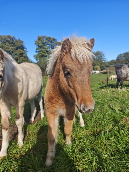 This lovely filly is looking for a new home after weaning. She was raised appropriately on large pastures alongside other foals, is regularly dewormed, and has been introduced to the farrier. When leaving, she will come with full papers and is familiar with basic foal training, including loading. She is safe with electric fencing. If you'd like to learn more about my small breeding program, you can find me on Facebook under "Shetland Pony Breeding from Gothensee" or on Instagram at "Pony Breeding from Gothensee." Her estimated final height is approximately 10.6–10.8 hh. Interested buyers can reserve her and pay off the balance until pickup. Just get in touch... We also have more foals looking for new homes, such as a silver buckskin pinto (also a classic pony) or a small German pony in Palomino color. They are located on the island of Usedom. If transportation is the only obstacle, feel free to inquire anyway— I might plan a small trip.