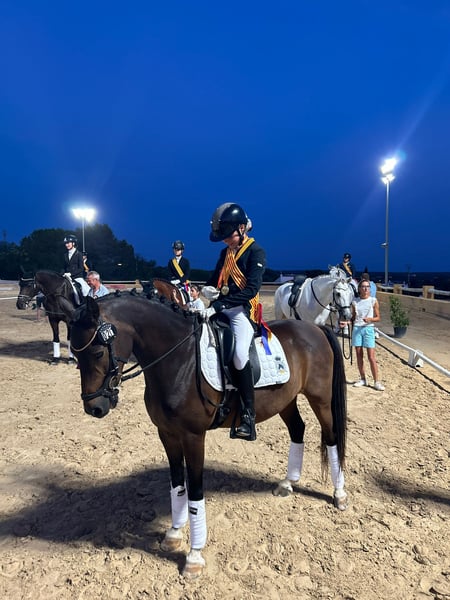 Pony in einwandfreiem körperlichem Zustand mit ausgezeichneten Bewegungen und einem sehr fortgeschrittenen Dressurlevel.