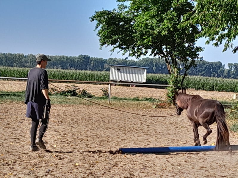 Roni ist ein 7-jähriger, sportlicher, aufgeschlossener und sensibler Classic Pony Wallach mit 115cm Stockmaß in Kutschponyausbildung. Ich suche eine zweite feste Bezugsperson für ihn, die ca. 2-3x die Woche vorbeikommt zum Putzen, Bewegen, Füttern und bei Bedarf Pflegen, vor allem auch irgendwann für die gelegentliche Urlaubs- und Krankheitsvertretung. Das Beschäftigungsspektrum liegt aktuell v.a. bei Bodenarbeit (Handarbeit, Longieren, Langzügel, Doppellonge, ...), Clickern (Desensibilisierung, Freiarbeit, Tricks...) & ausgedehnte Spaziergänge, später gerne Sulky/Gig/Kutsche Fahren. Ich bin recht offen, solange es dem Pony Spaß macht und gesundheitlich gut tut. Roni ist ein sehr feinfühliges und smartes Pony. Mit ihm zu arbeiten macht superviel Spaß, wenn man ihm die Sicherheit gibt, die er braucht. Er geht dann mit einem durch dick und dünn. Wenn ihn etwas stresst und man darauf nicht angemessen eingeht, kann er allerdings sehr schreckhaft werden. Deshalb ist er aktuell nur sehr bedingt für Kinder, Anfänger oder stark eingerostete Wiedereinsteiger geeignet. Ich bin zwar durchaus offen für nicht krass pferdeerfahrene Menschen, aber da ich dadurch zu Beginn einen erheblichen Mehraufwand mit Betreuung, Erklären, etc. habe, wäre mir hier der Wunsch nach einer langfristigen Zusammenarbeit besonders wichtig. Ab gesehen davon wünscht sich das Pony so oder so eine gewisse Verbindlichkeit. Wie gesagt... Sensibelchen ;) Was du unbedingt mitbringen solltest: - Bock, Bock, Bock auf dieses zuckersüße, hübsche, smarte Pony! - ordentlich Platz in deinem Kalender - Wetterfestigkeit, Zuverlässigkeit, Verantwortungsbewusstsein und den ganzen anderen Kram, den eigentlich alle Pferdebesitzer*innen wollen :D - freundliche, offene und ehrliche Kommunikation! - genügend finanzielle Mittel um neben der Kostenbeteiligung auch die eine oder andere Unterrichtseinheit zu stemmen, wenn nötig (oder von dir gewünscht) – ich werde dir aber möglichst viel selber an die Hand geben, wenn nötig, sodass sich die Kosten in Grenzen halten werden :) Was wünschenswert wäre, aber nicht unbedingt erforderlich, wenn sonst alles passt: - Volljährigkeit - Erfahrung mit Bodenarbeit, Zirzensik oder sogar mit dem Fahren - Erfahrung mit Jungpferden, bzw. Pferden in Ausbildung, da er erst seit Anfang des Jahres strukturiert gearbeitet wird - Bereitschaft sporadisch bei kleinen Projekten am Stall mitzuhelfen Was wir mitbringen: - ein hübsches, liebes, arbeitswilliges, extrem feines und supersüßes Pony mit aktuell noch ein paar unerwünschten 'Special Effects', die sich bereits im letzten halben Jahr deutlich gebessert haben und auf jeden Fall noch weiter bessern werden - eine engagierte Halterin, die sich Zeit für dich und das Pony nimmt, wenn was nicht klappt – nicht nur anfangs, sondern dauerhaft - qualitativ hochwertige und passende Ausrüstung, gepflegt und in stetiger Ausbesserung - Offenstallhaltung mit Wasser, Strom, Licht, Longierzirkel, Reitplatz, Bewegungshalle, traumhaftes Gelände direkt vor dem Hoftor, unternehmungslustige Stallgemeinschaft, aber auch viel Ruhe - keine Stallarbeit nötig Ich biete für Roni KEINE Reitbeteiligung an (zu klein für Erwachsene, zu schreckhaft und unerfahren für Kinder). Wenn du Lust hast, uns unverbindlich kennen zu lernen oder vorab irgendwelche Fragen hast, schreib mir gerne mit ein paar Infos zu dir! Ich würde mich sehr freuen!