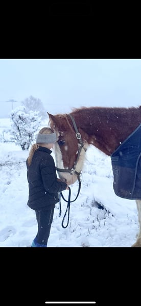 Supra is a 15-year-old Clydesdale mare with an impressive height of 1.80 m. Despite her size, she is a true all-rounder: she jumps reliably, loves relaxed trail rides, and can even be ridden with a neck ring or without a saddle. With her calm, fearless nature, she is also well-suited for children – even the youngest can already ride her. Supra is very people-oriented, child-friendly, and up for any fun. She is ideal for leisure riders looking for a reliable, well-behaved, and versatile horse that provides a lot of joy both on the trail and in the arena.