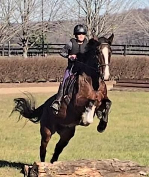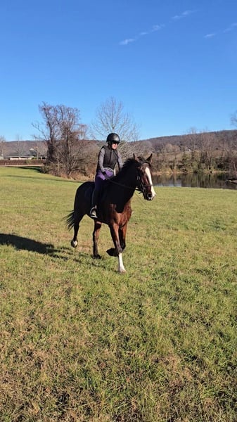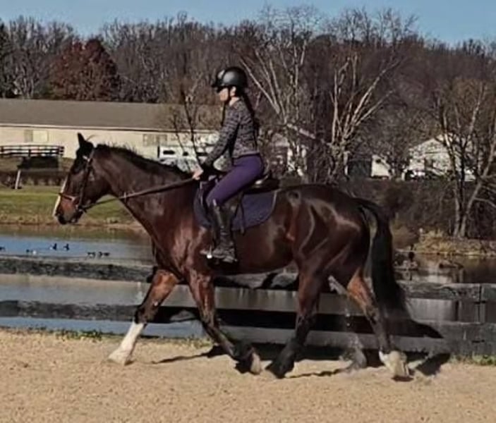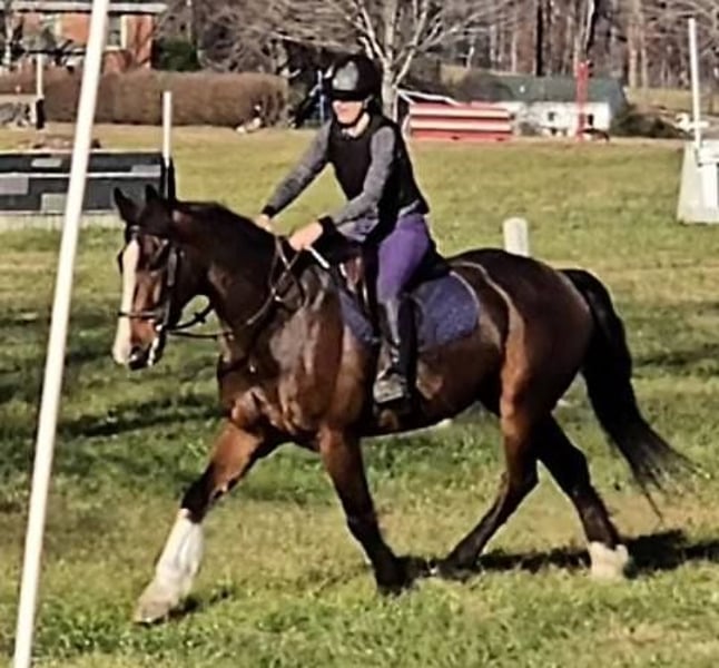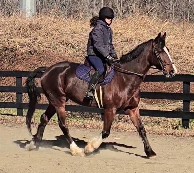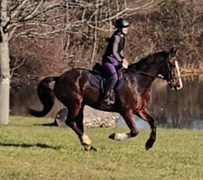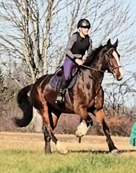 "AVAILABLE ON ONLINE HORSE AUCTION AT www DOT MagicHorseAuction DOT com BIDDING OPEN NOW thru TUESDAY | December 9TH! - BUY IT NOW AVAILABLE! *Final price will be determined on auction site* CONSIGNOR CONTACT INFO: Nicole Ingrassia 571-289-2947 LOCATION: Jeffersonton, VA "Looking for the perfect horse and didn't want to compromise? Well, now you don't have to, because Silas is the total package! *Brains* *Beauty* *Athleticism* This sporty gelding is a 7 year old simply stunning, chromed out, mahogany bay American Warmblood gelding (Clydesdale cross) standing at a lanky 16.1h with a correct, uphill build, sporty athleticism and a very quiet, agreeable, amateur friendly, laid back, sweet disposition. This sweetie has a dreamy canter, picks up his leads easily, and he has scope galore over jumps and he loves the trails. In my opinion, he is older lady safe but younger lady interesting (and yes, husband safe) and quiet enough for the whole family. While he is not a packer yet, he seems suitable for just about anyone due to his quiet and willing nature. He is shown us no spook no buck no lunge/prep and been a no nonsense kind of guy suitable for all rider levels. We have taken this gelding on trail rides, cross-country schooling, and through fire/smoke and other challenges, and he has demonstrated a wonderful disposition combined with a steady temperament and oodles of athleticism. In a simple word, Silas is so much fun! He is a chill dude and would be just as happy to live a slower-paced life too, but if you want to gallop over fences, hill top, foxhunt, or jump a course of fences, he will also be happy to comply. He has a dreamy, smooth athletic canter that is fluid and smooth like a gazelle (only a lot slower), and he rides in a simple snaffle. We have ridden him in a halter or a bridle, english or western, and he has been the same off-property as he is at home. He is soft in his mouth and not strong at all, and he has great transitions. He loves the trails and he is content to meander through the woods and cross creeks. Silas does not need to be lunged or ridden every day to maintain his composure. I can picture him as being the ultimate foxhunting horse, hilltopper, or even guest and husband/family horse as needed or wanted or he a lovely all-arounder for an amateur rider. Silas is also very smooth to ride and comfortable. His WTC are lovely and easy to sit, and he picks up the correct leads very easily. Silas is an incredible horse with an incredible disposition and amount of try. If you've been looking for that one in a million unicorn, in my humble opinion he makes the cut. Silas has no blemishes, and he is sound and healthy and not on maintenance. Silas had a recent vet check prior to the auction with clean results. He is up-to-date on dental, vaccines, coggins, deworming, and just had a fresh set of shoes put on. Silas has no vices at all and he is easy to have around, he can live in or out and gets along well with other horses. He has great ground manners and is wonderful to work around and is very polite, easy to catch, friendly, and a sweet mild-mannered gelding. He does not have reg. papers currently, but his age of 7 coming 8 has been verified by both vet & dentist, and he is eligible to be registered with American Warmblood Society if his new owner wishes. Silas comes with 1 week of free board, and he can be boarded at our farm after that time as well. We can board for the holidays. We can help with arranging shipping nationwide or to Canada. If you have any questions or interest in Silas, we encourage you to reach out: 57l2892947, thank you!