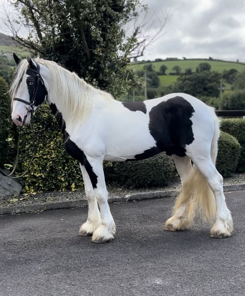 Introducing the Border Lord Truly a one of a kind Horse. He has the size, substance and Style. A proper high stepping Cob. He is broken to drive and has pulled 2 and 4 wheel vehicles. Has served mares in hand and natural in the field. Would be a fantastic addition to anyone’s breeding program. Located in Ireland, and can assist with transport