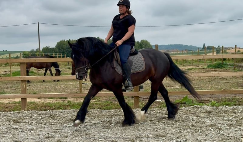 Beautiful Irish Cob mare from Ireland. She stands at 1.53 meters (around 16.1 hh) and is 13 years old. She comes from Ireland where she was used as a broodmare. She is broken but remains sensitive on rides; she is fearless and confident in the field. However, she is more sensitive and challenging under saddle, requiring an experienced rider. Currently, she is not being ridden as she was previously used for a child but proved too difficult for that purpose. A life as a broodmare or as a leisure horse would suit her better. Exchange possible for a more sporty horse or an Irish Cob filly. Price: €4,500, negotiable.