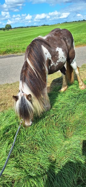 **Te koop: Gezellige Merrie Cob – Geboren in 2024 – toekomstige men pony/ toekomstigekinderpony** Deze charmante merrie is een ideale metgezel voor de ervaren menner. Geboren in 2024, beschikt ze over een compacte en vriendelijke bouw met een stokmaat van 125 cm, waardoor ze perfect geschikt is voor de menner die op zoek is naar een betrouwbare en goede maat. Haar gevlekte vacht geeft haar een unieke uitstraling en maakt haar extra opvallend in de mennerij. Ze is nog onbeleerd door haar leeftijd, maar is bekend met grondwerk. Deze merrie is gezond, goed verzorgd en heeft een rustige, betrouwbare aard. Ze is sociaal in de kudde en makkelijk in omgang(braaf bij de smit, en bij de tandarts)waardoor ze zich snel thuis voelt in haar nieuwe omgeving. Ben je op zoek naar een mooie, vriendelijke en leergierige cob-merrie. Neem gerust contact op voor meer informatie of een vrijblijvende kennismaking!