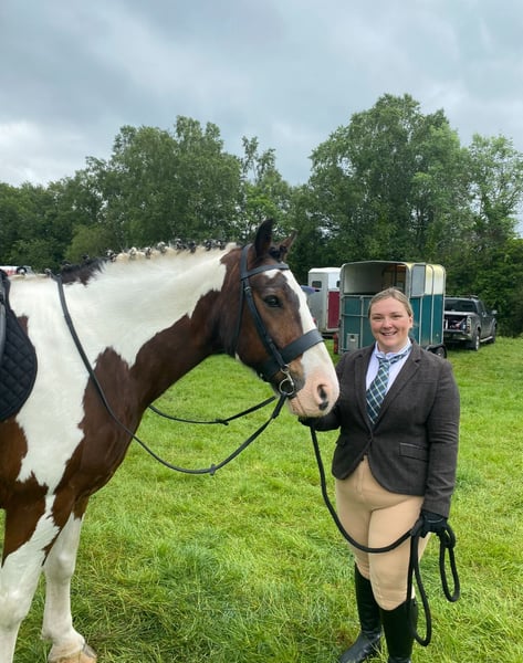 Harry ist ein 14-jähriger Tinker, der in Irland / Donegal gezüchtet wurde. Ich habe ihn die letzten sechs Jahre selbst geritten. Wir haben viele Ausritte gemacht, auch am Strand, im Wald, Longieren, einige Shows in Hand- und Reitklassen, Bodenarbeit und kleine Sprünge. Er ist ein großer, sanfter Kerl, der es liebt, gestriegelt zu werden. Er ist äußerst freundlich zum Hufschmied, lädt problemlos in den Pferdeanhänger, ist an landwirtschaftliche Geräte gewöhnt, lebt in einer Herde und kennt den Umgang mit anderen Pferden. Er hat vorbildliche Manieren, ist gewöhnt ans Kämmen und Anlegen von Decken. Harry ist ein Tinker, den man nur schwer findet, und aufgrund seiner Größe erfüllt er viele Wünsche. Aufgrund familiärer Veränderungen habe ich die traurige Entscheidung getroffen, ihm ein neues, dauerhaftes Zuhause zu suchen. Mir fehlt einfach die Zeit für ihn.