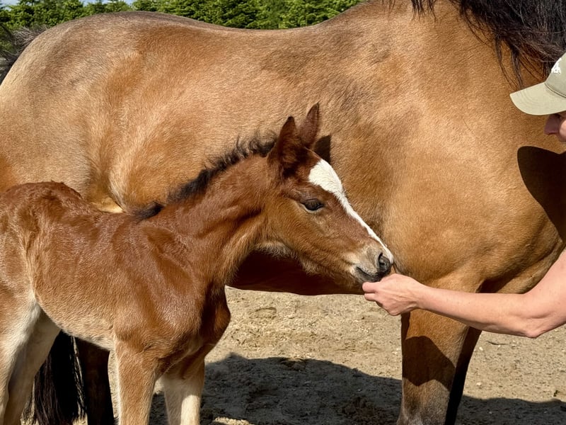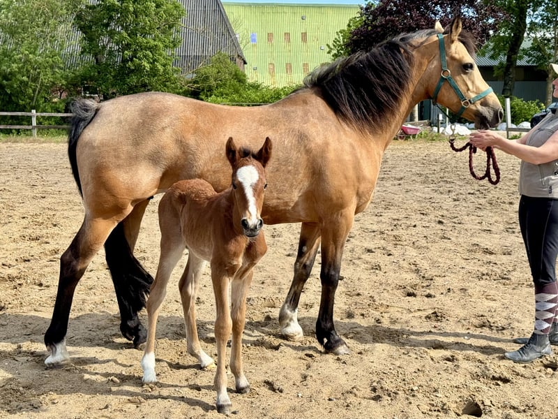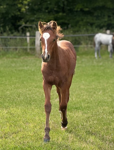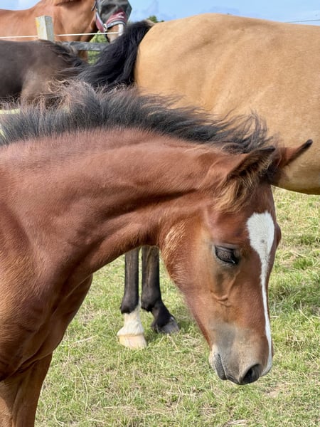 After being weaned in November, this expressive colt "Borghorsts Martini" is looking for a new owner. Martini is raised in a species-appropriate manner in a pasture with a herd of mares and foals. He is very herd-compatible and plays with the other foals. He is registered with the horse studbook in Schleswig-Holstein. His mother Silver Beauty is sired by Gvennic de Goariva x Silver Shadow, both ponies have been highly successful in international pony show jumping. His father Arda’s Murphy has produced licensed stallions throughout Europe, as well as award-winning mares and foals. Our foals are regularly dewormed, introduced to the farrier, and are halter-trained.