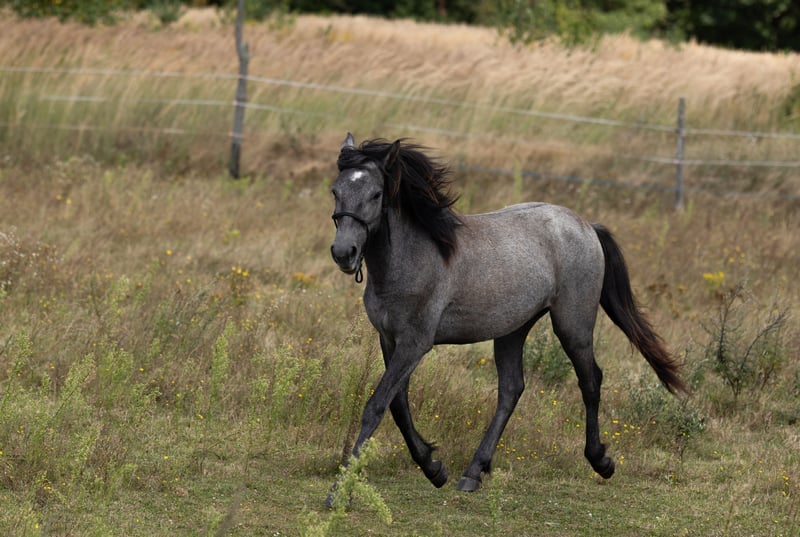 The best hands recommend a mare born in March 2024. Ideally 14.0-14.1 hh. She has a passport and is registered as a Polish riding pony. Sire: Montego VS Connemara; dam: Tetyda. Her mother works in recreation and jumps well under children. Her sire comes from a sport line, and her grandfather, Ares, competes at the Preliminary and Middle levels. She is gray, raised in a free-range environment, completely healthy. Moves beautifully and is very agile and jumpy. She is very curious, quick, and energetic by nature. She possesses all the qualities expected at her age. She is currently tied up, stands for foot handling, and walks perfectly on a lead. She is familiar with various objects, forests, meadows, cars, motorcycles, and quads. She will be a lively gray with a black dorsal stripe. A pony from my breeding, raised with other horses in a herd, in a small private stable. A promising pony for children's sport. Please contact only serious inquiries, preferably via SMS.