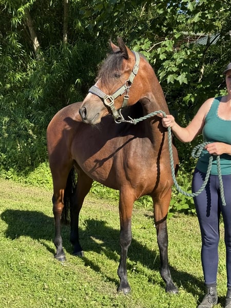 Tallulah est une très jolie jument Connemara qui ne deviendra pas trop grande. Elle atteindra une taille finale d'environ 1,40 m. En tant que poulain, elle a été primée. Elle sait se déplacer de manière impressionnante. Elle grandit pendant l'été dans un troupeau et peut rester ici à l'élevage jusqu'à l'automne. Malgré sa petite taille, Tallulah serait également intéressante pour l'élevage. Son père, Dunlewey Red Kite, a passé son test de performance de jeune étalon en Angleterre contre des chevaux de grande taille. C'est un poney toujours joyeux et agréable à monter. (Vendu en Suède) Sa mère, Tra Ban, a été importée directement d'Irlande. Elle a toujours eu des poulains très primés chez nous. Nos poneys sont tous manipulables avec un licol et sont enthousiastes pour toutes les disciplines équestres. Hwsd n/n, vacciné et vermifugé. Le prix est négociable, mais je ne souhaite pas "donner" mes poneys !