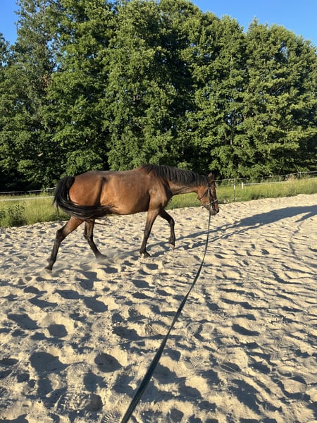 Kooperative und arbeitswillige Connemara-Mix Stute (Mutter: Dt. Sportpferd) sucht ihren Menschen, mit gefühlvoller Hand und der Freude, gemeinsam zu wachsen und durch dick und dünn zu gehen. Starlight ist in einem Offenstall aufgewachsen, kennt Trubel durch Reitschulbetrieb auf dem Hof und ist neugierig gegenüber neuen Dingen (auch Planen machen ihr keine Angst, siehe Foto). Das Einreiten wurde aus gesundheitlichen Gründen meinerseits pausiert. Sie kennt Sattel und Trense und wurde bereits mit Reiter im Schritt und Trab longiert. Sie will es einem immer recht machen und ist sehr lernwillig. Trotzdem braucht sie eine konsequente Hand die weiß, mit der Energie eines jungen Pferdes umzugehen. Spaziergänge klappen problemlos mit ihr und sie genießt es sichtlich in der Natur zu sein. Ein Pferd was einfach Spaß macht und leider aus persönlichen Gründen abgegeben werden muss. Sie wurde regelmäßig entwurmt und geimpft gegen Tetanus und Influenza. Sie ist Barhufer und wird auch hier regelmäßig dem Schmied vorgestellt. Ihre Zähne wurden im Herbst 2024 gemacht. Krankheiten hatte sie keine seit ihrer Geburt. Bei Fragen meldet euch gerne.