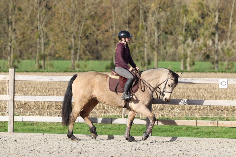 Bohola Beauty (“Bo”) Bo is een 5-jarige valk Connemara-merrie met een stokmaat van 1m53. Ze heeft een aantrekkelijk voorkomen, een zacht karakter en een nieuwsgierige ingesteldheid. Bo springt momenteel een parcourtje van 70 cm en toont duidelijk potentieel voor hoger werk. In de omgang is ze braaf, sociaal en maakt ze snel vriendjes op de weide. Ze geniet ook van wandelen buiten en blijft steeds meewerkend en attent. Bo stamt af van de bekende Connemara-hengst Bohola Mirah, een hengst met een sterke afstamming uit de lijn van Westside Mirah. Bohola Mirah staat bekend om zijn correcte bouw, goede beweging en sterke rasuitdrukking, eigenschappen die ook bij zijn nakomelingen vaak terug te zien zijn. Bo heeft een Class 1-afstamming. Ze is ook N/N getest voor hoofwall, wat extra gemoedsrust biedt over haar gezondheid en erfelijkheid. 📞 Meer info: +32 475 68 22 43 🎥 Voor video’s kan je terecht op onze website.