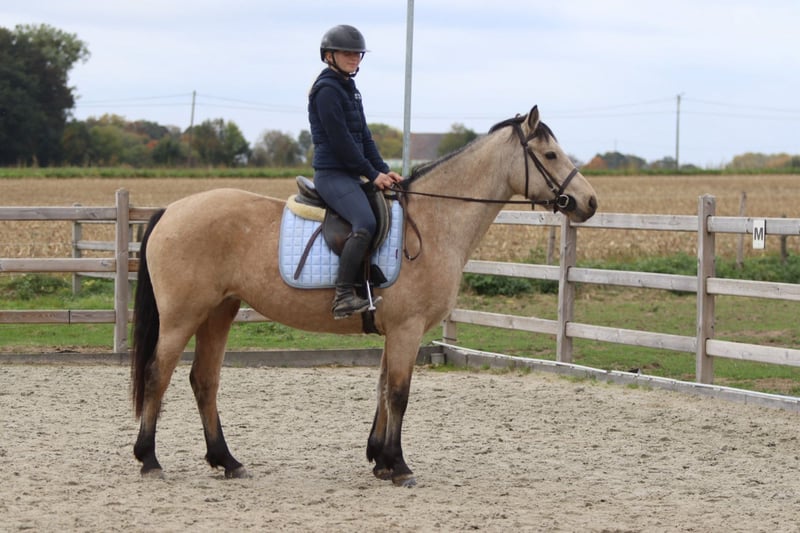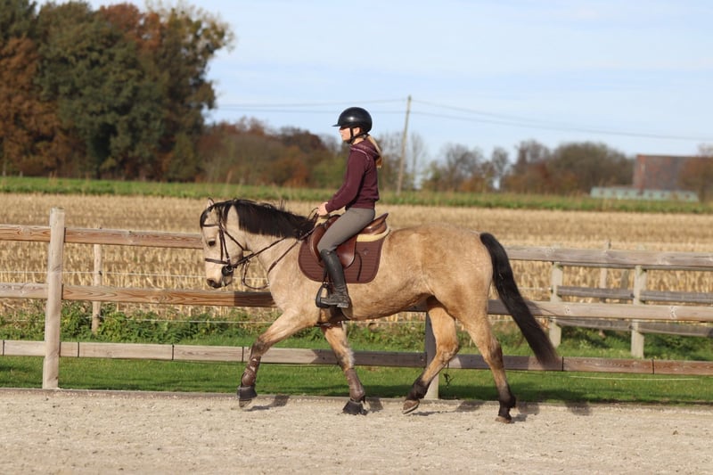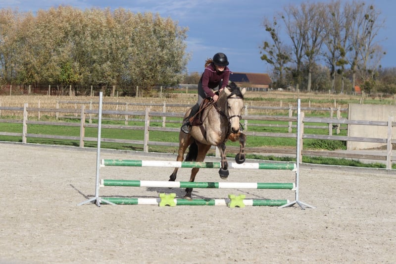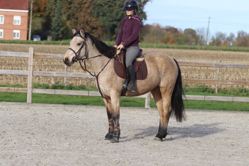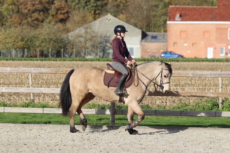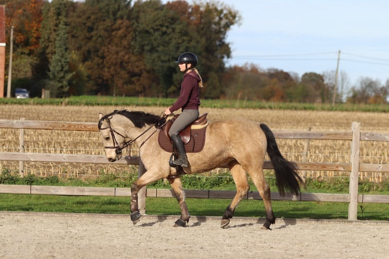 Bohola Beauty (“Bo”) Bo is een 5-jarige valk Connemara-merrie met een stokmaat van 1m53. Ze heeft een aantrekkelijk voorkomen, een zacht karakter en een nieuwsgierige ingesteldheid. Bo springt momenteel een parcourtje van 70 cm en toont duidelijk potentieel voor hoger werk. In de omgang is ze braaf, sociaal en maakt ze snel vriendjes op de weide. Ze geniet ook van wandelen buiten en blijft steeds meewerkend en attent. Bo stamt af van de bekende Connemara-hengst Bohola Mirah, een hengst met een sterke afstamming uit de lijn van Westside Mirah. Bohola Mirah staat bekend om zijn correcte bouw, goede beweging en sterke rasuitdrukking, eigenschappen die ook bij zijn nakomelingen vaak terug te zien zijn. Bo heeft een Class 1-afstamming. Ze is ook N/N getest voor hoofwall, wat extra gemoedsrust biedt over haar gezondheid en erfelijkheid. 📞 Meer info: +32 475 68 22 43 🎥 Voor video’s kan je terecht op onze website.