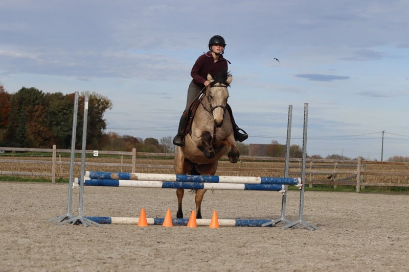Bo is a 5-year-old chestnut Connemara mare standing at 1.53 meters. She has an attractive appearance, a gentle temperament, and a curious nature. Currently, she jumps a cross-country course of 70 cm and clearly shows potential for higher levels of competition.