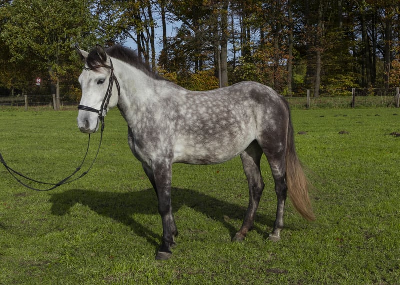 Unsere Reitschule sucht ein neues Zuhause für unser unverbrauchtes Endmaßpony Sky. Wir haben sie 5 jährig Angeritten, weshalb sie sich noch am Anfang ihrer Ausbildung befindet. Unsere Reitschüler stellten sie schon in Jugend- & Springreiterprüfungen vor. Dabei war sie immer brav und kopfklar. Im Gelände zeigt sich Sky als sehr nervenstarkes und unerschrockenes Pony. Ob alleine oder in der Gruppe, auf sie ist immer Verlass. Bei uns lebt Sky im Offenstall in einer gemischten Ponyherde, kennt allerdings auch die Boxenhaltung. Sie ist eine dominante Stute die bei klarer Führung mit ihrem Reiter durch dick und dünn gehen wird und ein echter Schatz ist. Beim Einfangen, Putzen und Fertig machen legt sie, vor allem bei Fremden, gerne mal die Ohren an. Lässt sich ihr neuer Besitzer von ihrem Verhalten nicht verunsichern und findet Vertrauen zu ihr, entspannt Sky innerlich und legt ihre Skepsis ab. Aufgrund einer leichten Fehlstellung in den Vorderbeinenen (steht mit beiden Hufen nach außen gedreht) möchten wir sie aus dem Schulbetrieb raus nehmen. Als Freizeitpony ist der Befund nicht relevant. Wir haben die Beine röntgen lassen, ohne Befund. Der Schmied muss regelmäßig kommen und die Stellung korrigieren. Mit den Schmied- & Tierarztbesuchen hat sie keine Probleme, ebenso auch das Verladen ist unproblematisch. Sky besitzt einen holländischen Pass. Bei Interesse und weiteren Fragen rufen sie uns gerne im laufe eines Tages an (zwischen 9 & 20 Uhr) die Handynummer ist der Anzeige zu entnehmen. Ein Tausch gegen einen passenden Muli, Haflinger, Tinker, robustes Pferd würde für uns auch in Frage kommen.