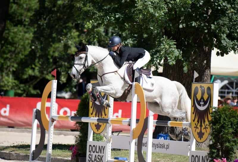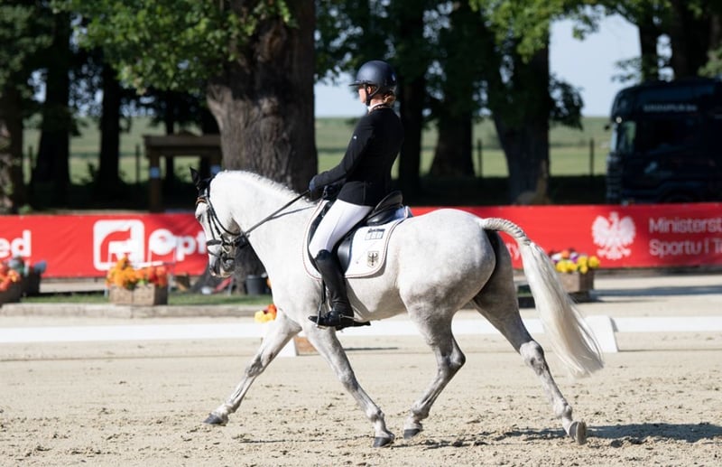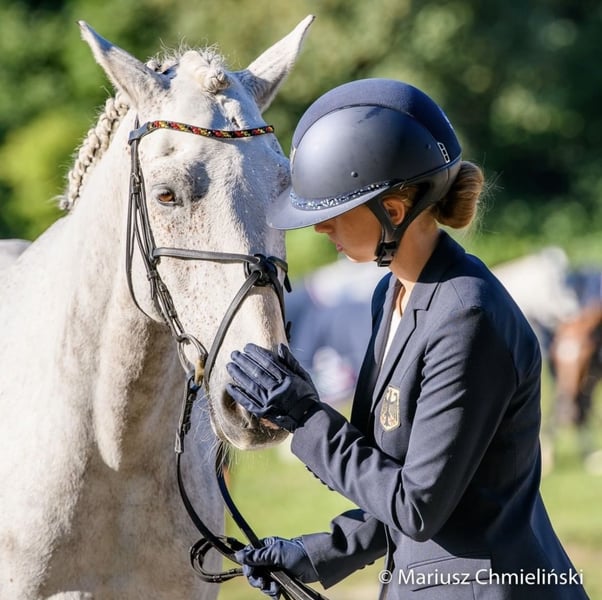 Na sprzedaż jest nasz wałach Connemara, urodzony w 2014 roku i zmierzony na 149,9 cm (Certyfikat pomiarowy FEI). Jego siłą jest zdecydowanie wszechstronność, w której odniósł liczne sukcesy, zdobywając wiele miejsc i zwycięstw w zawodach CCIP2*, uczestnicząc w Mistrzostwach Niemiec, a także zdobywając brązowy medal w Preis der Besten oraz 9. miejsce na Mistrzostwach Europy dla kuców. W skokach również może pochwalić się zwycięstwami do 1,15 m i miejscami do 1,20 m. W ujeżdżeniu osiągnął wyniki do poziomu A. Życzymy sobie, aby znalazł się dla niego jeździec, który będzie mógł rozwijać się w sporcie razem z nim i uczyć się od niego. Jest otwarty na wszelką zabawę, zawsze grzeczny, ale z wystarczającą ilością "power" i w parkurze oraz terenie jest absolutnie pewnym koniem. Aktualne zdjęcia rentgenowskie bez zmian są dostępne.