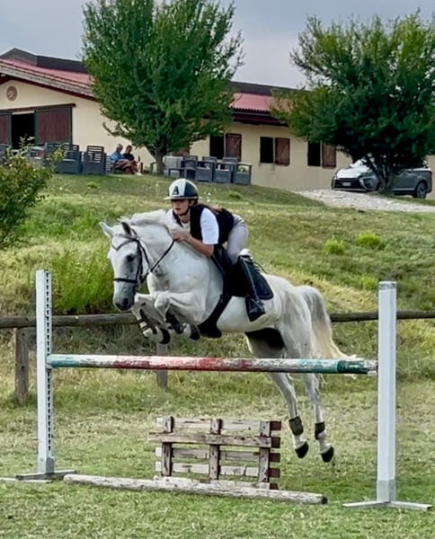 Pony grigio , anno di nascita 2012 , 13 anni Irlanda. Altezza 148. Con esperienza. Competitivo in in 100/105, ha gareggiato fino le 110/115 m Vincente in diverse competizioni nazionali (Regionali, Coppa Italia, Progetto Sport, _Finale italiana, e partecipato a stage federali E' bravo a mano, ad entarre in van, non scalcia. Molto tranquillo. Denti appena fatti, in regola con tutte le vaccinazioni. Nessuna patologia pregressa e mai stato fermo. cerchiamo un cavaliere o amazzone che si innamori di lui, che gli dedichi tempo e cuore,che abbia possibilità di paddock. Bravo anche in capezza e senza sella per momenti di relax con il suo cavaliere. vendiamo a malincuore per passaggio a cavallo NO PERDITEMPO