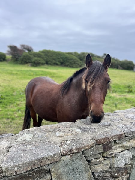 Beara Fionn ist ein 3,5-jähriger, korrekt gebauter Connemara-Wallach (momentan 140 cm, wächst noch), seit 4 Wochen angeritten im professionellen Beritt, vorher viel Bodenarbeit und Natural Horsemanship. . Er wird seit 4 Wochen geritten und schon länger longiert, kennt das Gelände in Gesellschaft, zeigt sich mutig, lernbereit und ausgeglichen. . Seit Geburt ist Fionn auf unserer Farm; er kennt Schafe, Kühe, Esel, und ist im Herdenverband aufgewachsen. Durch das Leben auf der Farm ist er an laute Maschinen und Traktoren gewöhnt und sehr menschenbezogen (Farm Walks mit unseren Gästen). Seine Mutter und Halbgeschwister können hier auch besichtigt werden. . Fionn ist barhuf, steht gut für den Hufschmied, lässt sich sehr leicht verladen und steht sicher und entspannt in der Box beim Transport. Er wird regelmäßig entwurmt. Die letzte Zahnpflege war Anfang November 2025. . HWSD: N/N . ⸻ Herausragende Abstammung Class 1 über alle Generationen im Pass . Vater: Knockbridge Mozart – Sohn des legendären Carnabay Mirah (Top-Sportvererber weltweit) Westside Mirah (internationaler Springvererber mit EM-Nachkommen) . Auch in der Vaterlinie: Grange Sandy – Leistungsponys mit viel Vermögen Templeready Boy – Hinterhandstärke & Sprungkraft . Mutter: Beara Princess, Tochter von Kippure Mo Cuishle – Gerittene Familen- & Sportponys Monaghanstown Fred – klassischer Typ, starkes Fundament, hervorragender Charakter Tobar Árann – Traditioneller Connemara mit viel Knochen & Tragkraft . Diese Linie vereint Sportlichkeit + Kopf + echtes Connemara-Typideal, und Fionn zeigt genau das. . ⸻ Charakter & Eignung ✔️ Guter Schritt/Trab/Galopp ✔️ Wach, aber nicht zu viel Go ✔️ Geländesicher in Begleitung ✔️ Zeigt sich kooperativ und klar im Kopf ✔️ Zeigt tolles Potential im Freisprung Zukunft im Springen, Vielseitigkeit oder als Familienpony. . Aktuell noch grün und unerfahren, aber sehr lernwillig und kooperativ – ideal für jemanden, der sein Pony selbst formen möchte. . 🇮🇪 Standort: West Cork, Irland 💌 Transport kann organisiert werden 📎 Pedigree & Videos auf Anfrage