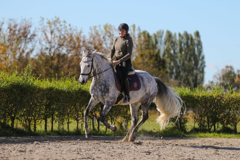Ho preso la dolorosa decisione di mettere in vendita il mio castrone grigio Tiger. A causa di cambiamenti nelle circostanze familiari, purtroppo ho poco tempo da dedicargli e si annoia molto... Con un'altezza al garrese di 160 cm, Tiger è un connemara pony XXL. Ha 7 anni ed è molto socievole e adatto a ogni tipo di divertimento. Ama molto fare passeggiate a cavallo e conosce strade, ponti autostradali, trattori… In campagna, gli manca ancora un po’ di routine e può risultare un po’ timido. Adora le lunghe passeggiate senza altri cavalli e accompagna sempre il suo cavaliere ovunque. Tiger si diverte anche molto a saltare e ha un buon approccio ai salti. Tuttavia, anche in questo caso, gli manca ancora un po’ di esperienza e forza, poiché purtroppo vado in stalla solo in modo irregolare… È molto facile da montare per chiunque. Se il cavaliere si sente insicuro, diventa molto cauto e procede lentamente. Non ha problemi con maleducazioni come bucking, scappare o scalciare. Tiger adora il lavoro a terra e il liberty e sa eseguire alcuni trucchi. Grazie al suo carattere amichevole e paziente, posso immaginarlo anche come pony per bambini, adatto alle competizioni. È vaccinato, regolarmente sverminato ed è molto docile e collaborativo dal veterinario, dal ferratore e durante il carico. Non sarà venduto a commercianti o a strutture scolastiche.