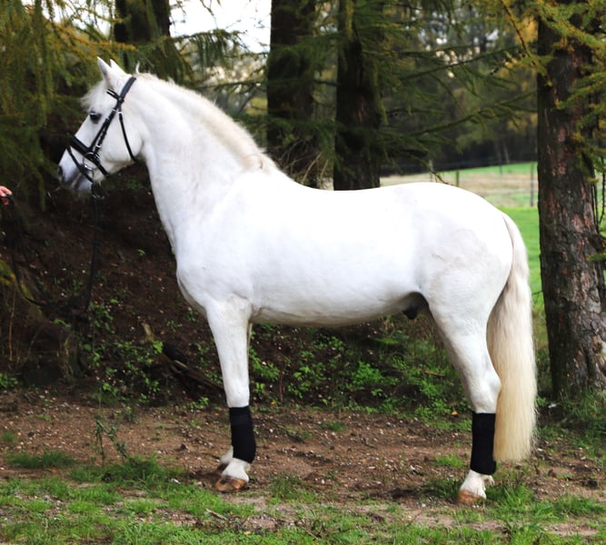 Connemara Gelding – Perfect for Leisure Riding! For sale is a lovely Connemara gelding, born in 2018. This grey impresses with his friendly nature and calm temperament. Standing at 146 cm (about 14.1 hh), he is ideally suited for recreational riding and demonstrates versatility in various activities. The gelding is healthy, regularly vaccinated, and presents a neat appearance. Well-trained and reliable in handling, he is looking forward to a new, caring family that will appreciate his talents. He is accustomed to open stable management. Barefoot and compact-built, he also comfortably suits taller riders. For more information or to arrange a viewing, please contact me at 0172 2734811. Come and see this charming leisure horse for yourself!