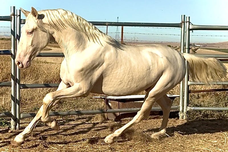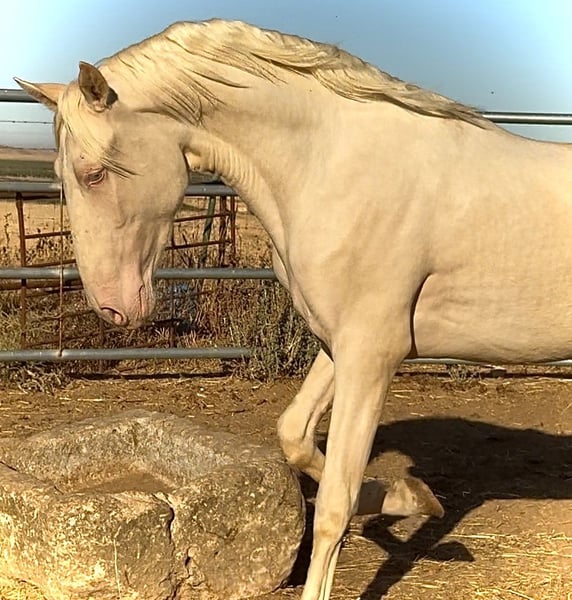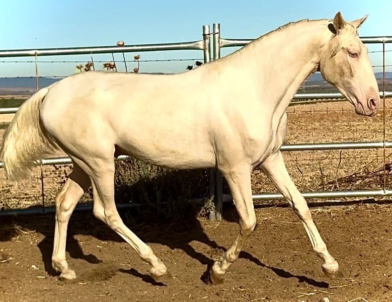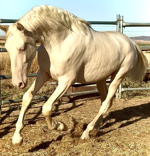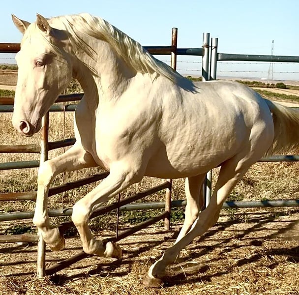 Potro Lusitano Albino Cremello El potro tiene PASAPORTE EUROPEO MUY NOBLE MUY MANSO Tiene una alzada actual de 1,59-1,60 cm Cumplirá los 2 años en Febrero de 2026 Padre 1,73 Madre 1,68