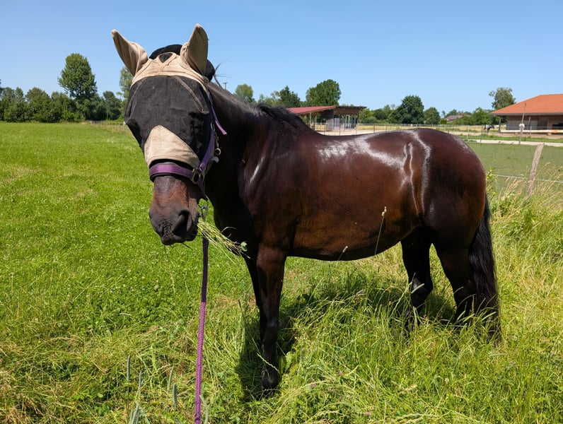 Due to significant changes in my personal situation, I unfortunately have to give up my hobby horse due to lack of time and am therefore looking for a new, loving home for my soon-to-be 15-year-old Cruzado mare, Flica. • Height: 1.63m • Shoed in front, barefoot behind (hoof boots for trail riding available) • Regularly seen by a veterinarian and osteopath • Dewormed, freshly vaccinated, teeth checked in September • Absolutely loadable • Goes out alone into the countryside without any problems Due to a fracture of the upper tail vertebra last December, she is only conditionally rideable. Currently, we go for relaxed rides in the countryside about 2-3 times a week, and she noticeably enjoys this - trotting and occasional cantering are also possible. Otherwise, we do a lot of groundwork with her for muscle building, lunging with poles, or simply go for walks. She has a mild summer eczema - a fly mask and an inexpensive lotion for her mane and tail are completely sufficient. Otherwise, she is healthy and requires no medication. Flica is not suitable for beginners or children. She needs a lot of calmness and empathy in handling; then she is a true treasure. Currently, she is in an active stable with a large mixed herd, where she is relatively high in rank. Will not be sold to purely box housing! All equipment can be purchased additionally if interested. Price: Protection fee, negotiable.