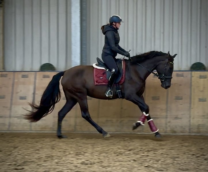 Name: Mare Breed: Crossbreed (Hybrid) Gender: Mare Date of Birth: September 1, 2021 Age: 4 years Height: 16.1 hh Color: Dark Brown Sire/Dam: Unknown Temperament: friendly and affectionate towards people, curious, intelligent, eager to learn, brave Training/Suitability: ridden, suitable for leisure riding and dressage Trail Experience: reliable, confident, fearless, comfortable alone or in a group Health: dewormed, vaccinated, barefoot, eczema-free, teeth checked, osteopathically treated Stabling: box stall or open stable Special Features: good farrier and loading manners, herd-compatible Please note that these traits are based on our personal assessment and do not constitute guaranteed qualities. Price: €7,500 (gross) Interested in Mare? We would be happy to send you a riding video to give you a better impression of her. Of course, we are available for a detailed description, personal consultation, and to answer all your questions via phone. Feel free to contact us anytime via WhatsApp or call us at +49 151 19487595. Our phone hours are daily from 7:00 AM to 1:30 PM and after 8:00 PM. We look forward to hearing from you! A veterinary or radiological pre-purchase examination can be arranged with your veterinarian. Mare can be transported safely and comfortably to her new home. We handle all preparations and transportation to ensure your new horse arrives stress-free, well cared for, insured, and in good health. Currently, we offer a carefully selected range of horses for sale. With us, you are sure to find your dream horse. Visit our website at www.marvinsroyalhorses.de for more information. Dear customers, we are happy to introduce you to our horses and offer opportunities for grooming, tacking up, lunging, ground work, and trial riding in the riding hall, on the arena, or in the field, so you can get to know your new family member better. The cost is €40 per horse, with each additional horse €30, and will be refunded upon purchase. Our address: Ferdinand Grube 50 53577 Neustadt-Wied Google Maps: marvinsroyalhorses