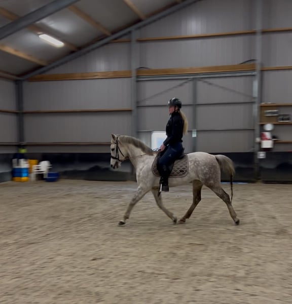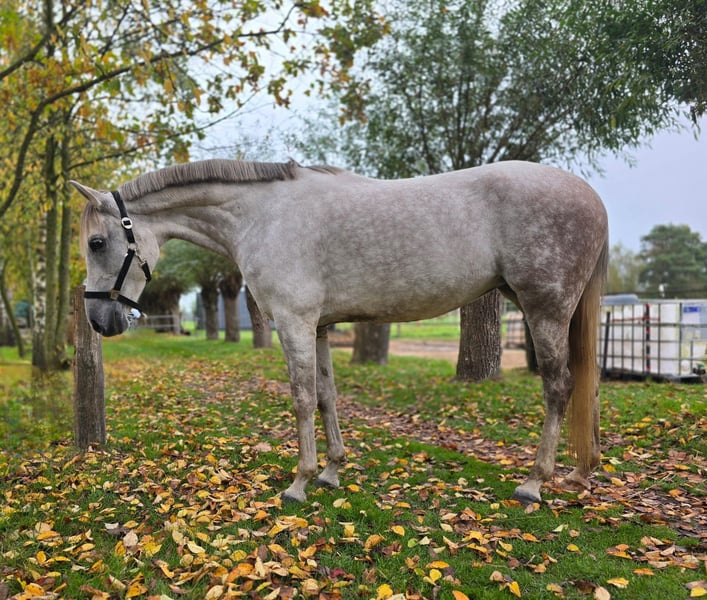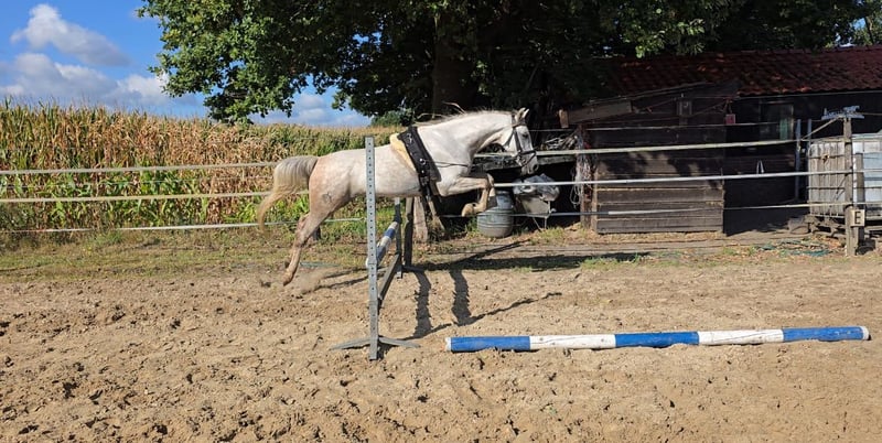 Costurera is een knappe 7-jarige Cruzado schimmel merrie van ongeveer 1.55m. (Haar roepnaam is Ceria) Ze is een ontzettend lieve en eerlijke pony die opzoek is om samen met iemand een mooie (allround)sport toekomst aan te gaan. Costurera(Ceria)kan mooi en fijn dressuurmatig bewegen met veel souplesse en licht voetwerk ook maakt ze een mooie sprong en wordt ze enorm fanatiek hiervan. Omdat ze nog niet zo lang in Nederland is, hebben we haar eerst de tijd gegeven om goed tot rust te komen en op eigen benen te leren lopen. Ze is momenteel ruitermak maar moet nog veel leren! Ze kent de basis van het rijden en ze kent longeren met en zonder bijzet, het zadel en hoofdstel, de poetsplaats, de hoefsmid en loopt zonder problemen de trailer op. Costurera(Ceria)komt met haar eigen hoofdstel, zadel en dekje. We zoeken voor haar een 5⭐️ huis waar ze met liefde, geduld en plezier verder kan worden opgeleid maar wel door iemand met kennis en ervaring gezien haar bloederige karakter,hierom is ze(op dit moment)absoluut géén kinderpony!