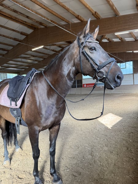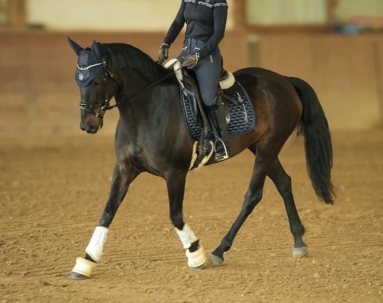 Zum Verkauf steht meine 8-jährige PRE-Stute Sie hat ein Stockmaß von ca. 1,60 m und wurde bisher freizeitmäßig dressurorientiert geritten, kennt das Gelände und hat auch schon kleine Sprünge mit Freude gemeistert. Unter erfahrenen, feinfühligen Reitern zeigt sie sich motiviert, lernwillig und arbeitsfreudig. Sie geht brav in allen drei Grundgangarten, lässt sich bei korrekter Hilfengebung schön in Anlehnung reiten und möchte ihrem Reiter immer gefallen. Im Gelände ist sie vorsichtig, aber brav, und vertraut ihrem Reiter schnell, wenn sie Sicherheit bekommt. Im Umgang ist sie menschenbezogen, freundlich und unkompliziert – sie liebt Aufmerksamkeit und möchte gefallen.
