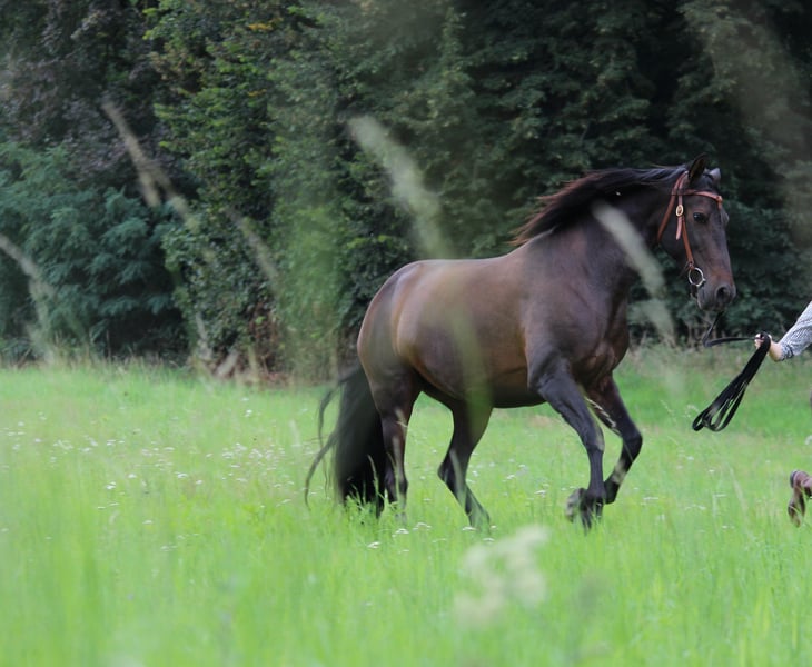 Aufgrund gesundheitlicher Probleme meinerseits suche ich schweren Herzens ein neues, liebevolles Zuhause für Colina. Colina hat eine fundierte Grundausbildung. Als echte Spanierin hat sie sehr weiche, rückenfreundliche Gänge. Sie ist in den Grundgangarten, sowie ersten Seitengängen und an einigen Trailhindernissen angenehm zu reiten. In bekanntem Gelände kann sie alleine geritten werden. Ich habe Colina zuerst mit Hilfe eines Westerntrainers Grundausgebildet, aktuell nehmen wir Dressurunterricht bei einer klassischen Reitlehrerin. Mein Ziel für uns war die Working Equitation. Colina kennt daher bereits die Brücke als Trailhindernis, sowie das Reiten und Longieren über Stangen in verschiedenen Höhen. Am Boden kennt sie die Arbeit am Leitseil und klassisch angelehnte Lektionen. Sie ist gut im Rückwärtsgehen und kann zum Beispiel eine Figur 8 um Hütchen herum treten. Aus allen drei Gangarten hält sie zuverlässig und schnell an. Colina tritt gut Seitwärts und verbessert derzeit ihr Schulterherein. Travers und Renvers bietet sie auch bereits an. Im Stallalltag ist Colina sehr unkompliziert. Schmied (auch mit Flex), Hunde, Kinder, Fahrzeuge, Stallarbeiten sind ihr ohne Probleme bekannt. Colina ist sehr intelligent und lernt schnell. Sie hat einen sensiblen Charakter, weshalb sie eine oder sehr wenige feste Bezugspersonen braucht. Sie kann die Stimmung ihres Menschen sehr feinfühlig erkennen und spiegelt einem diese wieder. Daher ist sie kein Pferd für unsichere, ängstliche, schnelle oder hektische Personen. Sie vertraut gerne Menschen die Ruhe und Sicherheit für sie ausstrahlen können. Geregelte, gleichbleibende Tages-/Stallabläufe und eine feste Gruppenkonstellation sind für sie wichtig. In der Herde ist Colina im mittleren Rang und geht Auseinandersetzungen aus dem Weg. Sie ist kein Roustpferd und benötigt eine Regendecke im Frühjahr/Herbst und bei Minusgraden eine Winterecke und einen geschützten Schlafplatz z.B. in einer zugluftfreien Box. Ich wünsche mir für Colina eine Person oder Familie, die mit ihr weiter arbeitet und ihr ein dauerhaftes, liebevolles Zuhause mit pferdegerechter Haltung und einer eher kleinen, beständigen Pferdegruppe bieten kann. !!! Kein Verkauf an Reitschulen, Händler, Ferienbetriebe oder ähnliches !! Das Equipment, auch ein neu angepasster Passier-Dressursattel kann bei Interesse ganz oder in Teilen dazu erworben werden. Bei weiteren Fragen oder Interesse an einem Kennenlerntermin, freue ich mich über Ihre/Deine Nachricht. Durch meine Berufstätigkeit bin ich tagsüber telefonisch nicht erreichbar, ich bitte daher um eine erste Nachricht per E-mail an klara.nordbrock@web.de