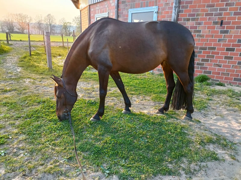 Due to health issues on my part, I am reluctantly looking for a new, loving home for Colina. Colina has a solid basic training. As a true Spaniard, she has very soft, back-friendly gaits. She is pleasant to ride in the basic gaits, as well as in the first lateral movements and over some trail obstacles. In the field, she can be ridden alone, but she is much happier with a calm companion horse and is noticeably more relaxed then. I initially trained Colina with the help of a Western trainer, and currently, we are taking dressage lessons from a classical riding instructor. My goal for us was working equitation. Colina is already familiar with the bridge as a trail obstacle, as well as riding and lunging over poles at various heights. On the ground, she knows how to work on the lead rope and classical exercises. She is good at backing up and can, for example, perform a figure 8 around cones. She stops reliably and quickly from all three gaits. Colina moves well sideways and is currently improving her shoulder-in. She also offers travers and renvers. In the stable routine, Colina is very uncomplicated. She is familiar with the farrier (even with a flex), dogs, children, vehicles, and stable work without any problems. Colina is very intelligent and learns quickly. She has a sensitive character, which is why she needs one or very few fixed caregivers. She can very sensitively perceive her human's mood and reflects it back. Therefore, she is not a horse for insecure, anxious, fast, or hectic individuals. Regardless of horse experience, she prefers to trust people who can radiate calmness and security. Regular, consistent daily/stable routines and a stable group structure are important for her. In the herd, Colina is of medium rank and avoids conflicts. She is not a rugged horse and requires a rain sheet in spring/autumn and a winter blanket with a protected sleeping place, e.g., in a draft-free box, during cold weather. Otherwise, she quickly develops back pain, which she shows very clearly. However, with some warmth, it usually goes away by the next day. I wish for Colina to have a person or family who will continue to work with her and provide her with a permanent, loving home with horse-appropriate care and a rather small, stable group of horses. !!! No sale to riding schools, dealers, holiday operations, or similar !! The equipment, including a newly fitted Passier dressage saddle, can be purchased in whole or in parts if interested. If you have any further questions or are interested in a meeting, I look forward to your message. Due to my work commitments, I am not reachable by phone during the day, so I kindly ask for an initial message via email at klara.nordbrock@web.de.