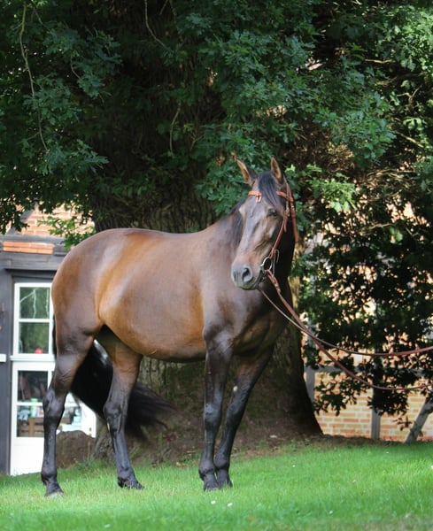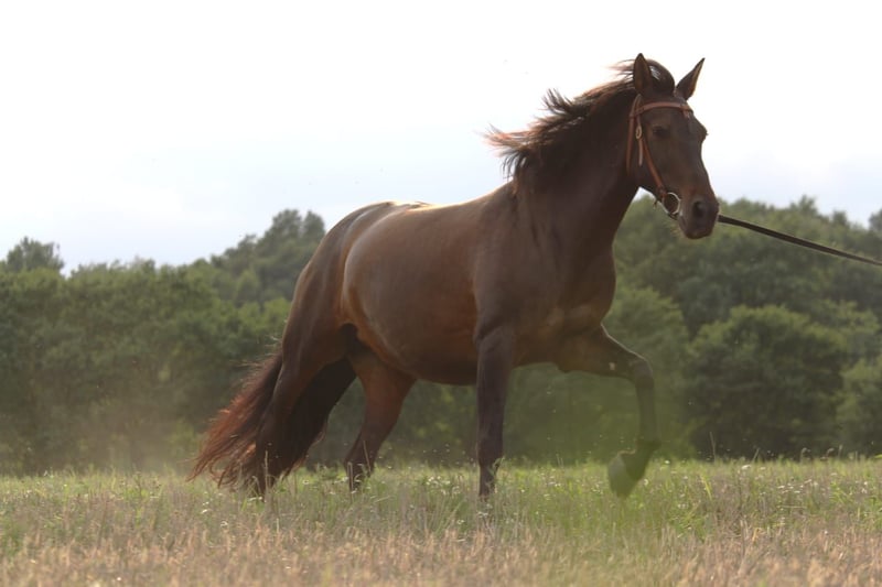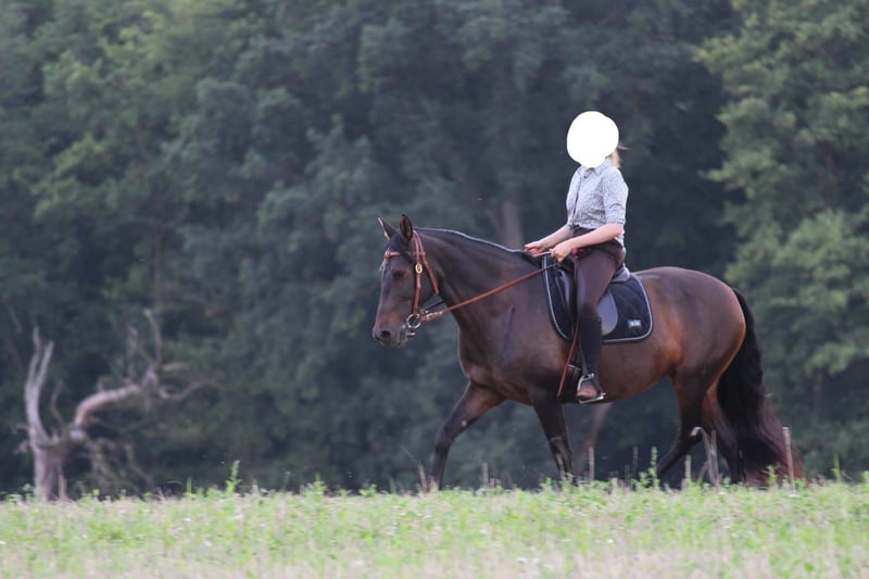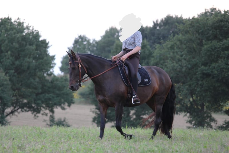Zum Verkauf steht eine bildhübsche dunkelbraune Cruzado Stute mit einem Stockmaß von ca. 162 cm. Sie überzeugt durch ihr korrektes, kompaktes Gebäude und ihr angenehmes Wesen. Colina ist barhuf, regelmäßig entwurmt und geimpft und kennt sowohl Boxenhaltung mit Paddock als auch im Sommer 24-Stunden-Weide. Aufgrund von sehr reichhaltigem Heu ist die Stute aktuell etwas übergewichtig. Charakterlich ist sie ein echtes Herzenspferd: sehr lieb, menschenbezogen, freundlich und aufgeschlossen gegenüber Mensch und Pferd. Colina ist feinfühlig, intelligent, lernwillig und interessiert an neuen Aufgaben. Neue Inhalte nimmt sie schnell auf und arbeitet stets motiviert mit. Unter dem Sattel überzeugt sie durch sehr weiche und angenehme Grundgangarten. Die Stute wurde vielseitig gearbeitet und ist ein echtes Allroundtalent. Angeritten wurde sie im Westernstil und kennt bereits Brücke, Stangenarbeit, Sidepass und weitere Elemente. Aktuell wird sie in klassischer Reitweise weiter ausgebildet und lernt unter anderem Anlehnung, Schulterherein und Gangverstärkungen. Aufgrund ihres aktuellen Ausbildungsstandes ist sie noch nicht für Anfänger geeignet. Zwar lässt sie sich von unerfahrenen Reitern lenken, benötigt jedoch reiterliche Unterstützung bei Anlehnung und den Lektionen. Im Gelände zeigt sie sich in der Gruppe entspannt, alleine ist sie noch etwas wachsam. Sie passt ideal zu einer feinfühligen, ruhigen und reiterfahrenen Person, die Freude daran hat, sie weiter auszubilden und regelmäßig zu fördern. Mit ihrem liebevollen Wesen und ihrem großen Potenzial ist sie ein echtes Traumpferd und wartet auf ihren passenden Menschen. Leider wurde bei einer AKU ein leichter Zufallsbefund festgestellt.