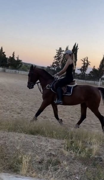 Caballo castrado cruzado (PSI X PSL) 12 años y 1,60 cm de altura. Tiene mucho caracter, fuerza y resistencia. No apto para jinetes inexpertos. Entrenado para la disciplina de salto habiendo competido en varias competiciones en alturas de 0,80 cm y 1 metro, actualmente por falta de tiempo, se encuentra como caballo de paseo por la sierra y trabajo en pista. Vacunado y desparasitado al dia, perfecto estado de salud.