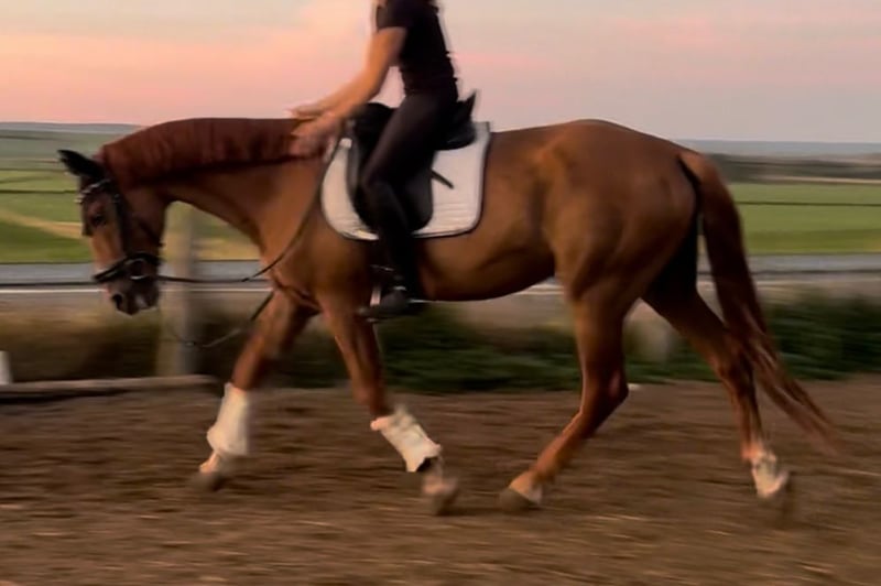 Fuchsi is a 6-year-old gelding standing approximately 1.60 meters at the withers, with an absolutely lovable character. He is very well-behaved and reliable under saddle, showing himself to be fearless both alone and in a group, whether in the terrain or on the trail. Despite his somewhat challenging past, Fuchsi is a true heart horse with whom you can do anything. He is human-oriented, friendly, and always up for some fun. Currently, he is shod in the front, lives in a box at night, and is turned out during the day. He is also familiar with paddock keeping, which is no problem for him. He still needs to build more muscle mass. We wish for Fuchsi to find a wonderful, loving home where he will be appreciated and loved just as much as he is with us.
