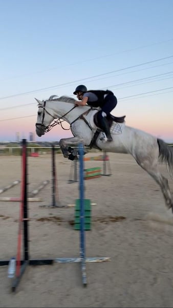 Se ofrece caballo de 7 años, con una alzada de 1,65 m, con muy buenas aptitudes y margen de progresión. En salto, ha participado en concursos sociales a 0,85 m, mostrando buena actitud, confianza y facilidad. En libertad ha saltado hasta 1,35 m, lo que evidencia un potencial interesante para alturas superiores. Destaca por su capacidad, técnica y predisposición, lo que lo convierte en un caballo con proyección para pruebas de mayor nivel. A nivel de doma, está iniciado en ejercicios laterales como espalda adentro, cesiones, galope reunido y paso atrás, aportando base y equilibrio. De carácter, es un caballo noble, manejable y colaborador, adecuado para jinetes con un nivel medio-alto que busquen un caballo con proyección. Genealogía contrastada: hijo de Icono de la Yeguada Militar (CDE) y madre CDE. Una buena oportunidad para quien busque un caballo joven, con base y recorrido por delante.