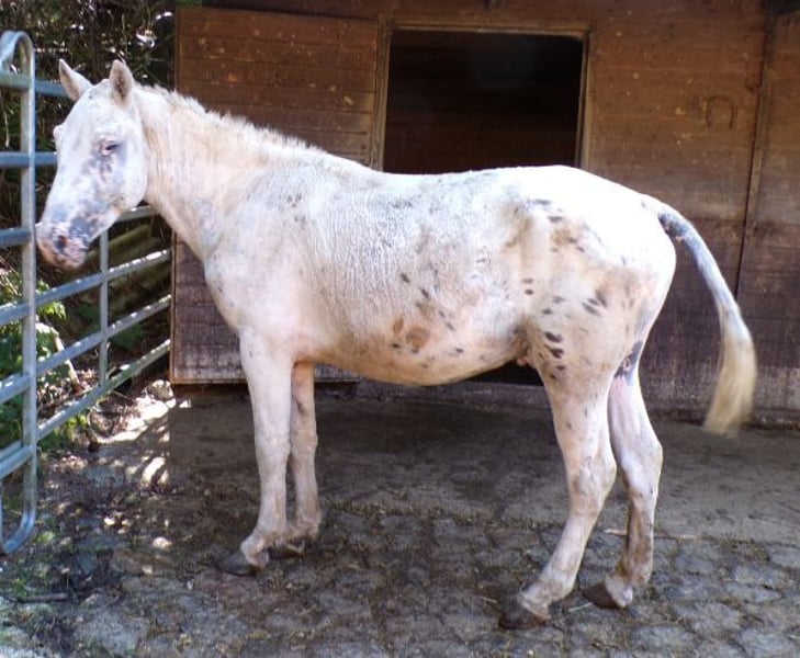 Yuma est un jeune étalon très doux, amical et sensible, qui sait maintenant qu'il est un étalon et trouve déjà les juments intéressantes ;-) . Il vient de Russie et a également des origines. Il peut être inscrit dans l'ICHO. C'est un extreme curly, donc homozygote pour les boucles. Il n'est pas encore formé et n'a pas encore été utilisé pour la reproduction. Il vit avec d'autres jeunes mâles dans un paddock ouvert. En raison de son pedigree, il n'est vendu qu'à des éleveurs en tant qu'étalon, car il serait trop dommage de le castrer. Il est à vendre uniquement parce que nous arrêtons notre élevage et dissolvons notre cheptel.