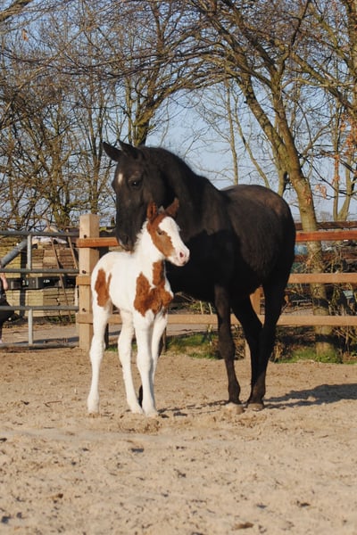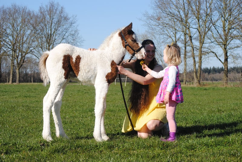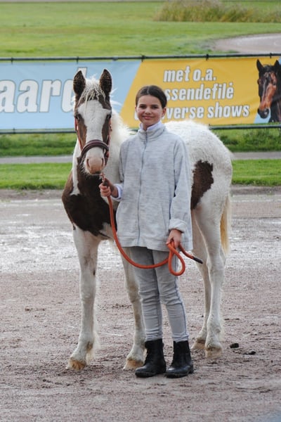 Heavenlysmile's Delight Curly Horse March 25, 2025 End height: 15.2 – 15.3 hh Silver-brown pinto KRT25-GEN Delight is a wonderfully affectionate horse with great potential for the future. She knows everything a young horse needs to learn. She is easy to groom, hoof care is straightforward, and she moves well in walk. Bathing is no problem. She also loads effortlessly into a horse trailer! She has already been to a show, where she behaved impeccably and adapted well to new surroundings. Her full sister was sold to America. Delight’s sire is known for his correct conformation and excellent temperament; he is currently in Mexico. Delight is an excellent family horse. She is child-friendly and strong enough to handle an adult rider comfortably. In short: an outstanding prospect for the future! We are asking €7,500 for Delight. Our price is exclusive of VAT, inspection, and transport costs. For questions, more information, or to see additional photos and videos, visit our Facebook page: Heavenlysmile Cob's and Curly Horse. Our website: heavenlysmile.nl Or send us a WhatsApp message! +31 61767 2265