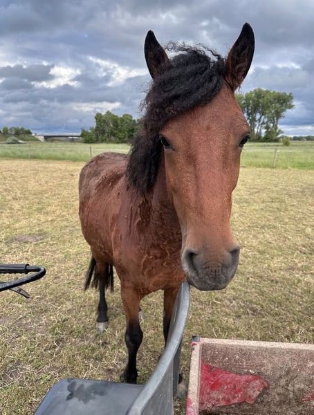 American Bashkir Curly Stute, geb. 2022, ca. 145 cm – mit besonderer Bewegung und viel Persönlichkeit Schweren Herzens- aus persönlichen Gründen suche ich für meine American Bashkir Curly Stute ein passendes, langfristiges Zuhause. Kein Notverkauf. Sie ist eine junge, sehr aufgeweckte und menschenbezogene Stute mit viel Ausstrahlung. Sie ist neugierig, verspielt und gleichzeitig aufmerksam und fein im Umgang. Sie genießt den Kontakt zum Menschen sehr und lässt sich gerne putzen und beschäftigen. Sie ist gut erzogen, halfterführig und lässt sich problemlos anbinden. Spaziergänge allein mit dem Menschen meistert sie sicher und entspannt. Bodenarbeit kennt sie bereits, ebenso verschiedene Umwelteindrücke wie Autos, Hunde und Kinder. Sie wächst im Herdenverband auf und kennt sowohl Offenstallhaltung als auch Box mit Paddock- Sie zeigt sich in der Box sehr sauber. In der Herde setzt sie sich gut durch und zeigt sich selbstbewusst. Hufschmied und Tierarzt sind für sie kein Problem. Sie ist verladefromm, gesund, geimpft und in einem sehr guten Zustand. Aktuell wird sie altersentsprechend und schonend auf ihre weitere Ausbildung vorbereitet. Besonders hervorzuheben ist ihre Bewegung: Sie zeigt viel Raumgriff, Takt und eine angenehme, weiche Bewegung mit zusätzlicher Gangqualität. Farbe: Braun mit ganzjährig leicht gelocktem Curly-Fell dunkle Beine Stockmaß: ca. 145 cm Als Saugfohlen prämiert. Abstammung vorhanden, Details gerne auf Anfrage. Transport ist gegen Aufpreis möglich. Zubehör kann ebenfalls gegen Aufpreis übernommen werden. Regelmäßig geimpft, entwurmt und gesundheitlich ohne Befund. Die letzten 3 Bilder sind ihre Eltern. Deliah Vater: Django - Rappe Mutter: Desba - Braun