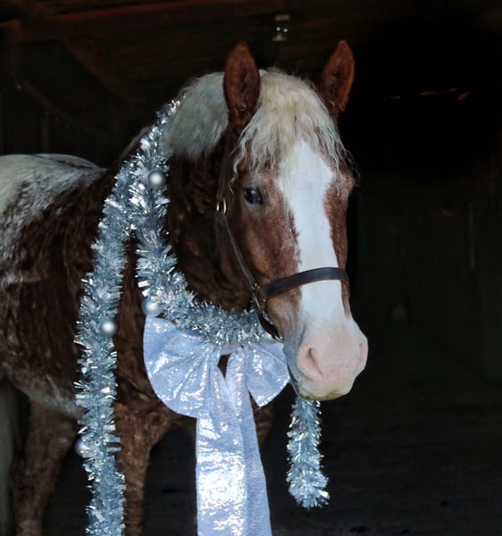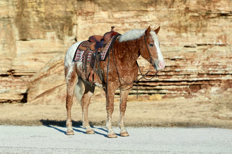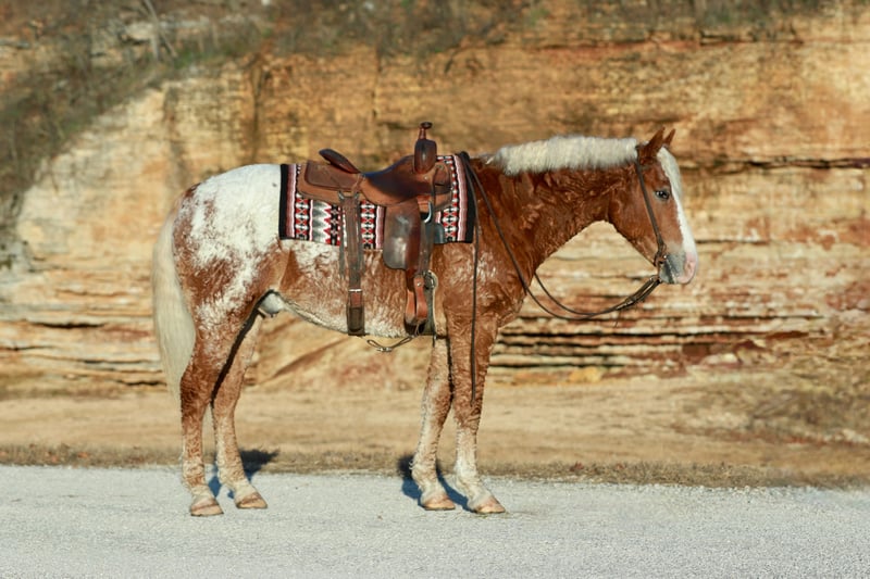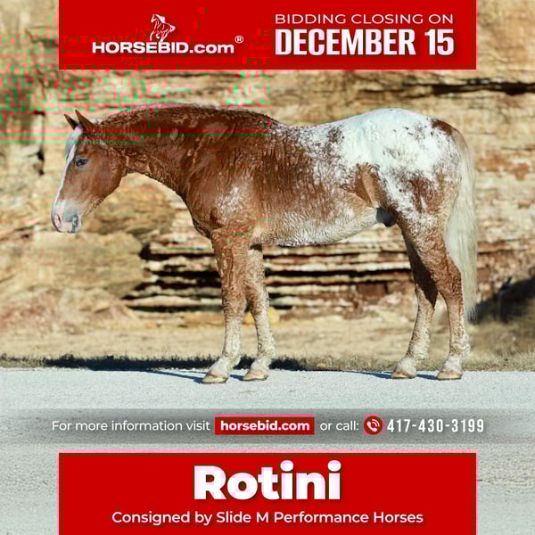 🎄𝐓𝐇𝐄 𝑯𝒐𝒍𝒊𝒅𝒂𝒚 𝐂𝐋𝐀𝐒𝐒𝐈𝐂🎄 Happening now thru MONDAY | DECEMBER 15th - Available EXCLUSIVELY on HorseBid's website! For more details and to register visit: www.Horsebid.com CONSIGNOR CONTACT: Slide M Performance Horses 417-430-3199 LOCATION: Mount Vernon, MO BREED: Curly Draft Cross REGISTERED: No REGISTERED NAME: Rotini COLOR: Appaloosa HEIGHT: 16 AGE: 10 GENDER: Gelding Rotini is the kind of horse that only comes around once in a lifetime—the one everyone hopes to find but few ever do. With a heart of a gentle giant and the mind of an old soul, he is exceptionally easy to get along with and truly unflappable. His temperament is as steady as they come, and he remains the same dependable, honest partner whether ridden daily or pulled out after time off. On the ground, Rotini is a perfect gentleman with excellent manners, standing quietly to be brushed, saddled, bridled, bathed, and for the farrier. Under saddle he is as versatile as they come. Whether you’re riding western, english, bareback, or even bridleless, he will do it all. He has been used for teaching very beginner riders up to jumping 3’ and everything in between. Rotini is a seasoned trail horse who has camped and ridden miles through rough terrain, crossing rivers, logs, and encountering wildlife without ever hesitating. He has also worked cattle, both pushing and sorting. His smooth trot and lope make ranch work enjoyable even after a long day in the saddle. Big and handy, he is capable of being used to start young horses and will ground tie anywhere for as long as asked. Beyond riding, Rotini is exceptionally dependable to drive; he has been hitched to wagons in parades, taken through drive-thrus and even car washes, navigated town squares full of lights, sirens, and semis—and never once been bothered by any of it. He is remarkably safe and trustworthy for riders of any age or ability, from small children to grandparents, and is the type of horse that gives confidence to a beginner and satisfaction to an experienced horseman. Rotini is not just an all-around horse—he is the gold standard.