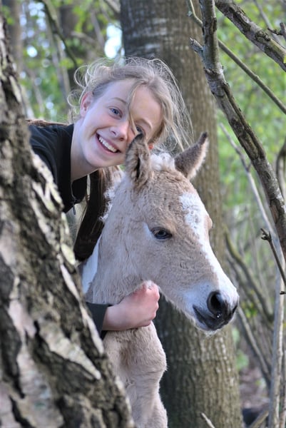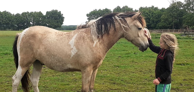 Heavenlysmiles Boomerang ❤ Are you looking for the sweetest, most adorable, affectionate, handsome (rock-solid) and beautiful hypoallergenic Curly Pony? Then you’ve found him! Boomerang is two and a half years old and has already proven that he not only has a golden color but also a golden temperament. What an incredibly sweet animal! Born in our garden, he spent his first six months outdoors, daily in our hands and those of five young children. Playing with the dog and his favorite activity was tugging on laundry – or rather, pulling it off the line and then running away with it. Now, Boomerang is grazing in a mixed herd on the large pasture. He is very grounded, neither bossy nor submissive. The perfect gelding for any herd! Boomerang is now two and a half years old and already castrated. He will grow to about 14.1–14.2 hh and is nicely stocky. On June 20th, 21st, and 22nd, Boomerang traveled with Sky to the Farm and Country Fair in Aalten. Thousands of visitors attended, and he enjoyed every day of all the attention. He kept coming back to everyone for cuddles! The unusual attractions like music, flags, umbrellas, tractor parades – too many to mention – he loved it all! The demonstration in the main ring promoting the Curly breed and the big applause were no problem for the boys! For the festival and overnight stays, he was loaded onto the trailer several times a day. The children handle this effortlessly with him. Boomerang carries the KRT25 Curly gene. He is a son of Tall Trees White Gold and a grandson of EB The Pirate. Heavenlysmiles Boomerang – a top horse for life! A great ride for small children or petite adults, or a stunning Curly Horse for carriage driving! Our price is exclusive of VAT, inspection, and transport costs. For questions, more information, or plenty of photos and videos, visit our Facebook page: Heavenlysmile Cob's and Curly Horse. Our website: heavenlysmile.nl Or send us a WhatsApp! 0031 61767 2265