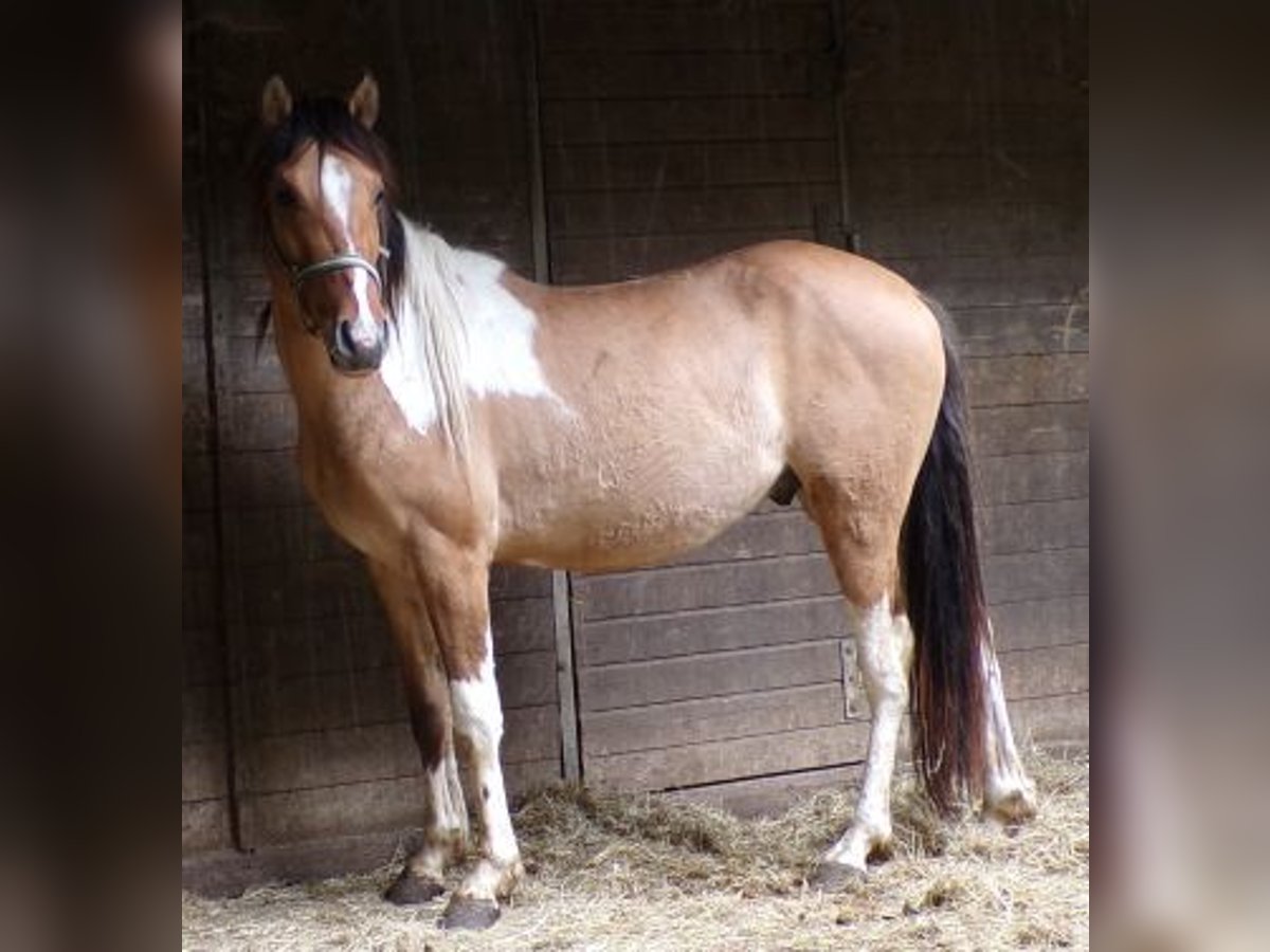 Nuestro chico es hijo de una yegua Curly Foxtrotter y un semental Paint, y debería alcanzar una altura final de 1,48 - 1,50 m. Es un compañero amigable, curioso y muy sociable, y ahora está en la edad ideal para comenzar su entrenamiento. Ha crecido en un grupo en un establo abierto y actualmente está en un grupo de machos. Se lleva bien en la manada y ocupa un rango medio. Ya está deseando encontrar un bonito hogar y vivir muchas aventuras.