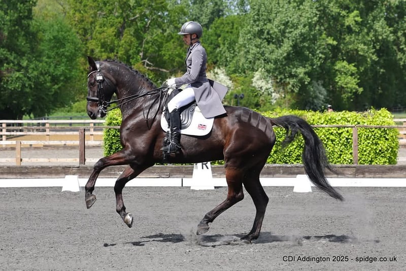 A la venta un caballo alto, de paso elevado, por Blue Hors Zack x Blue Hors Soprano. Ha competido internacionalmente en CDI Juveniles. Obtiene puntuaciones del 73 % en la prueba de Gran Premio. Conoce piaffe y passage. Es un caballo sensible y sería más adecuado para un jinete experimentado.