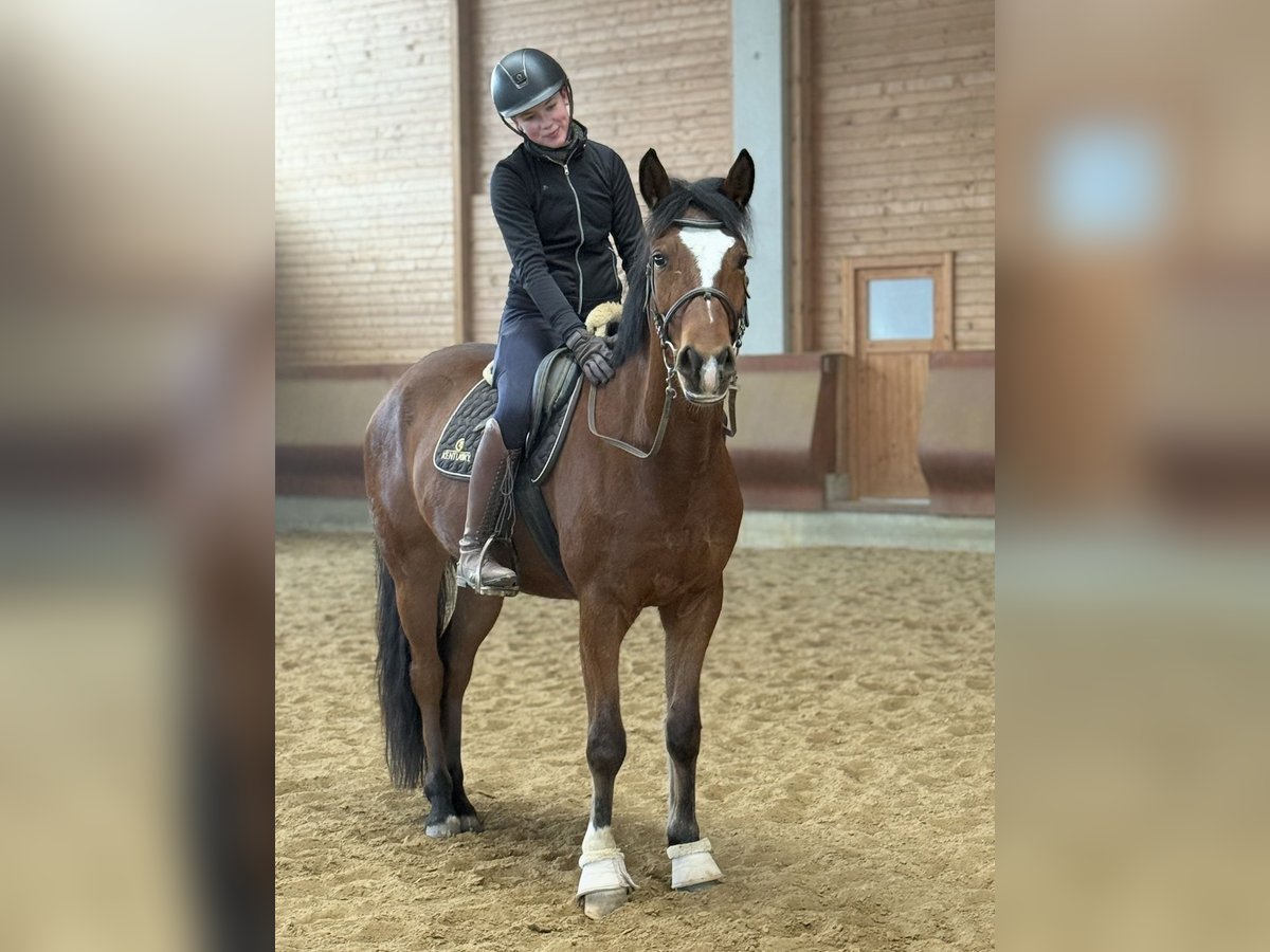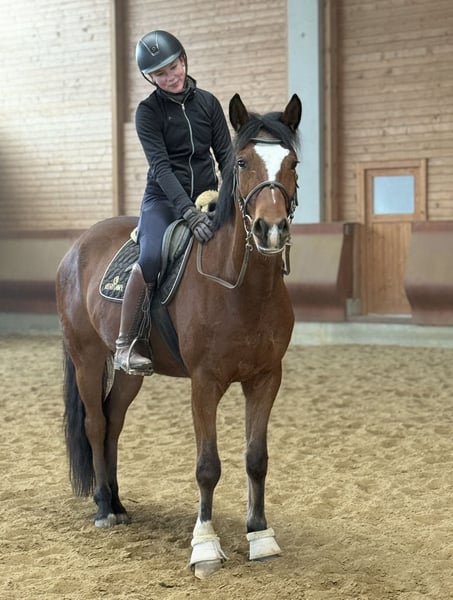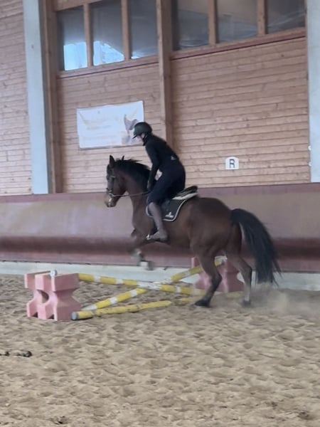 "Bobby Brown" ist ein 5-jähriger, 1,55m großer Wallach. Er wurde in den letzten Monaten von mir angeritten und zeigt sich unter dem Sattel motiviert und aufmerksam. Derzeit wird er Schritt, Trab und Galopp in der Halle geritten und macht erste kleine Sprünge mit dem Reiter. Dies muss aber noch gefestigt und weiter ausgebildet werden - eine schöne Grundlage ist vorhanden. Vom Charakter her ist Bobby ein absolut lieber und freundlicher Kerl. Zudem überzeugt er durch tolle Grundgangarten in welchen er toll an den Hilfen steht. Er ist derzeit jedoch kein Anfängerpferd, da er noch in der Ausbildung steht und Sicherheit sowie konsequente, ruhige Hilfen benötigt. Anfragen daher bitte nur mit ausreichender Kenntnis. Was er bereits kennt: - Gelassenheitsübungen mit Stofftieren, Plane und Dualgassen: macht er entspannt und gelassen mit - brav an der Longe - Hunde, Hühner, Traktoren sind Alltag - kurze Spaziergänge - Freispringen, erste Stangenarbeit sowie Sprünge - Ansätze der Anlehnung bzw. generell Stellung & Biegung Aufgewachsen ist Bobby in einer großen Herde auf riesigen Koppeln. Bei mir steht er in einer Box mit Paddock und tagsüber entweder mit seinen Jungs (4 Wallache) zum spielen oder mit meiner anderen Stute draußen. Er bringt die besten Voraussetzungen mit, um mit Geduld und liebevoller Förderung ein richtig tolles Reit- oder auch Sportpferd zu werden. Ideal für jemanden, der Freude an der Ausbildung junger Pferde hat und ein freundliches, unverdorbenes Pferd sucht, das noch am Anfang steht aber sicher Potenzial und Arbeitswillen mitbringt. Eine kleine AKU ohne Befund von Ende 07 diesen Jahres liegt vor. Zur weiteren Ausbildung kann er gerne weiterhin bleiben. Preis steigt mit weiterer Ausbildung.