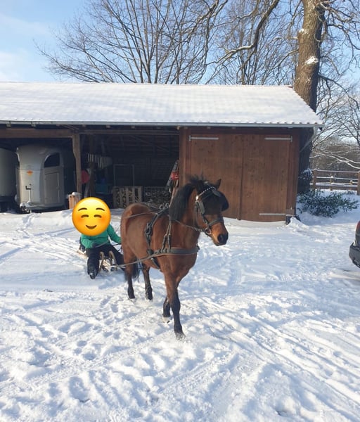 Unser Herzenspony sucht eine neue Herausforderung! Dieses liebevolle und zuverlässige Pony war vom ersten Spaziergang an bis hin zur Turnierprüfung stets ein absoluter Verlasspartner. Egal ob Bodenarbeit, Gelände unter dem Reiter oder vor der Kutsche, Sie ist in jeder Situation nervenstark,freundlich und klar im Kopf. Ideal als Kinderpony – geduldig und immer ehrlich im Umgang. Wir suchen ein neues Zuhause, in dem sie weiterhin gefördert und geliebt wird. Sie ist im Mai 2008 als Dartmoor-Mix geboren und gern gesund. Bei ernsthaftem Interesse freuen wir uns auf eine Nachricht!