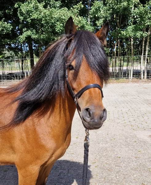Prachtige driejarige Dartmoor x Welsh merrie van de Dartmoor hengst Winston. Cookie is een jonge, nieuwsgierige merrie die aan het begin van haar opleiding staat en graag wil behagen. Ze heeft prachtige gangen, is zeer leergierig en gemotiveerd, longeren en voorzichtig ingereden. Ze kent de hoefsmid, gaat probleemloos in de paardenaanhanger en kent de dierenarts van de tandcontrole en het chippen (bij ons en bij de fokkers altijd gezond). Haar geschatte eindmaat ligt rond de 120 cm. Vanwege haar leeftijd willen we haar nog niet als kinderpony verkopen, maar we kunnen ons echt goed voorstellen dat ze dat ooit zal worden. Ook haar afstamming spreekt voor zich: De ouders en ook haar broers en zussen zijn betrouwbare pony's die onder kinderen en in de paardensport presteren. Dit maakt Cookie ook interessant voor de fokkerij. Cookie zoekt nu een passend thuis waar ze haar volledige potentieel kan ontwikkelen. Meer video's, foto's en informatie kunnen we graag op aanvraag sturen.